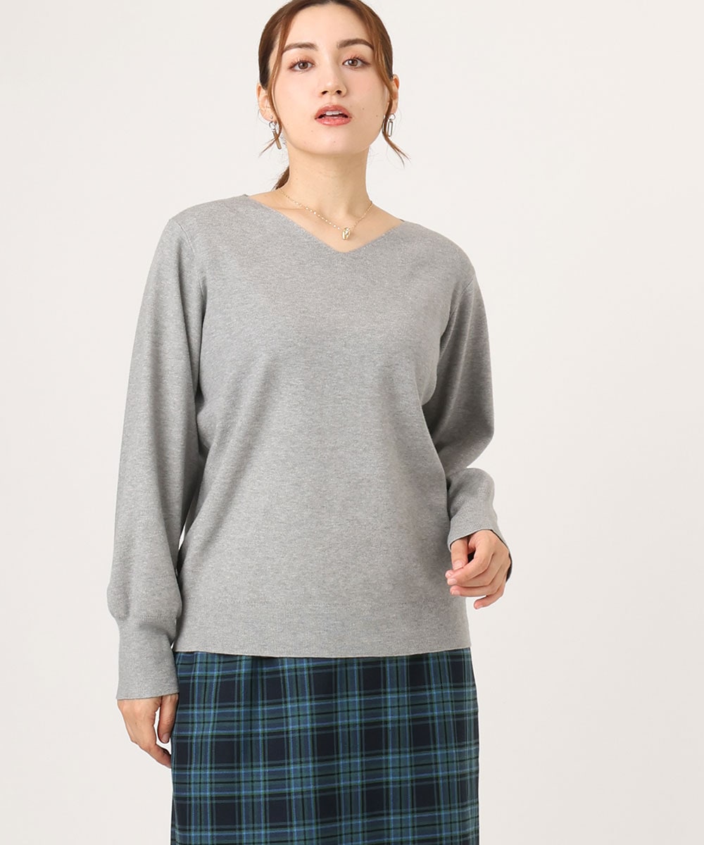 ▼Vネックパフスリーブニット
