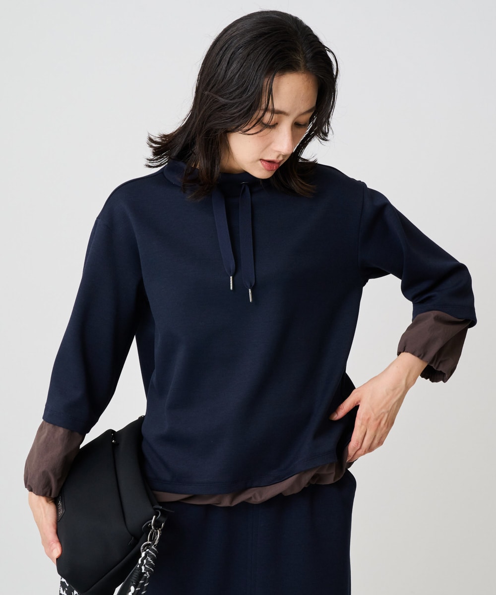 ダンボールハイネックプルオーバーは、立ち上がるハイネックと配色タフタのアクセントが魅力。スポーティな雰囲気ながらも、大人の上品さを保ちつつ、どんなシーンにも対応します。