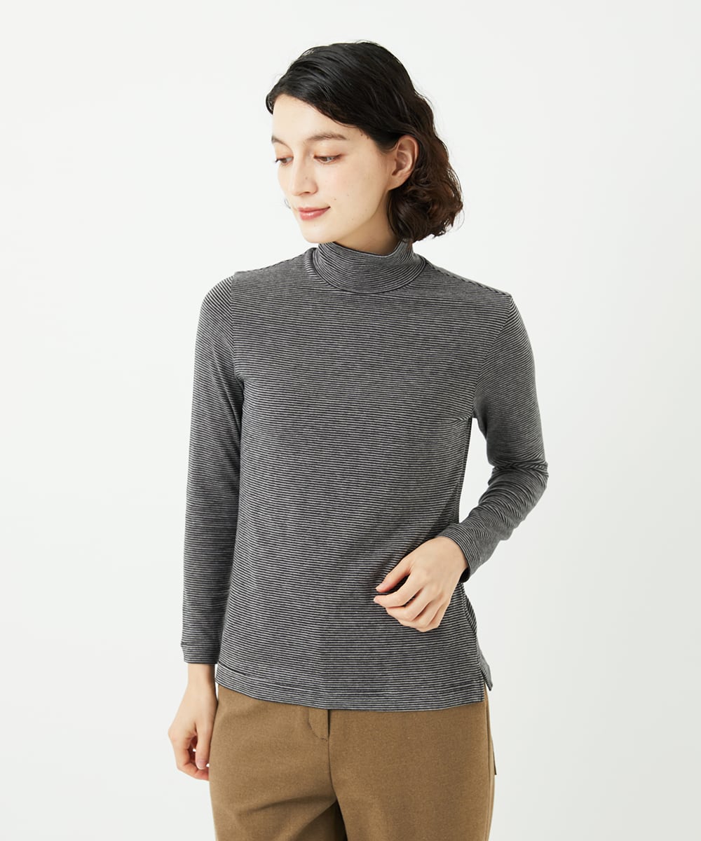 ミッププロッサムベア天ボーダー柄ハイネックカットソー