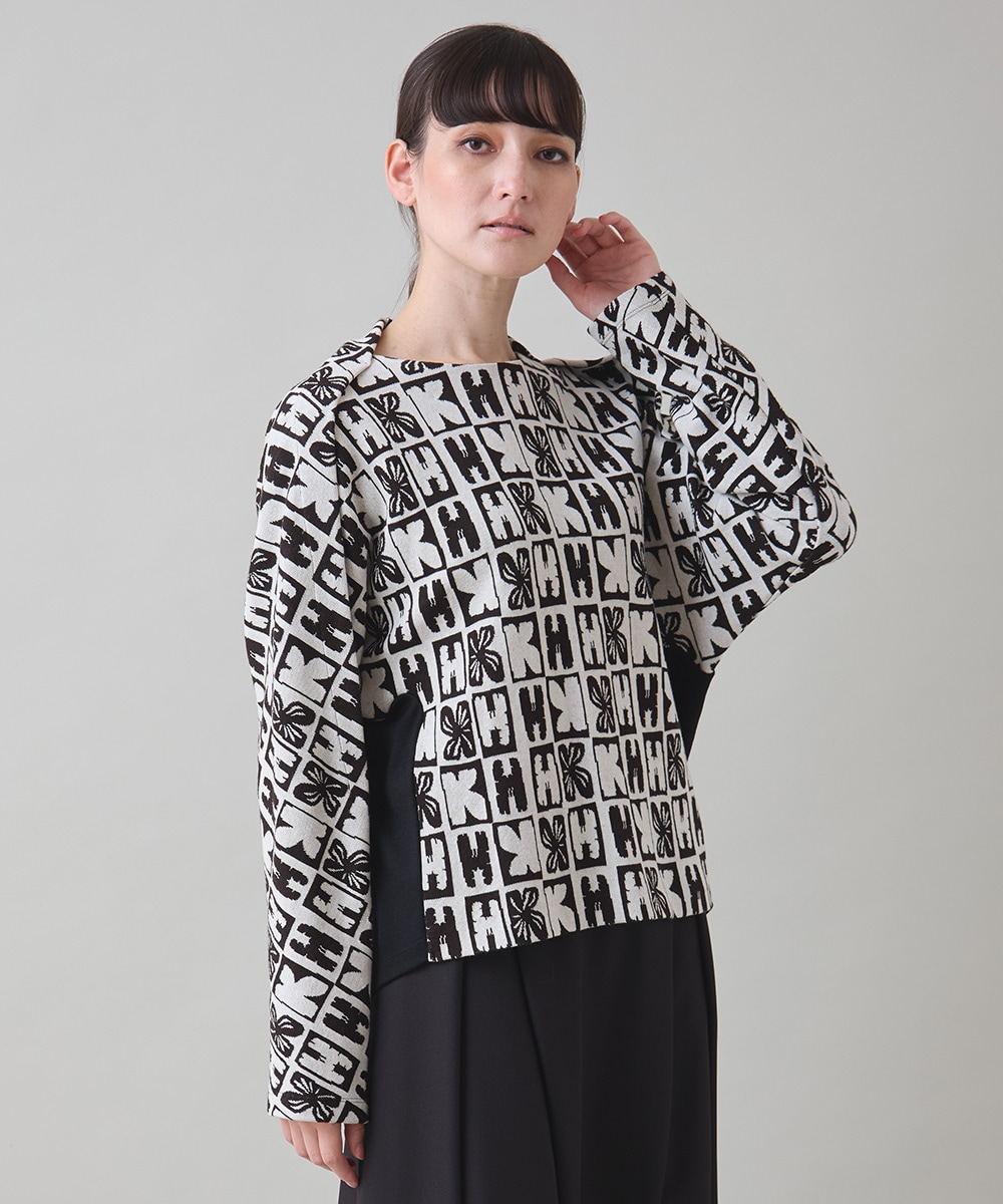 HKフラワーロゴジャカードニットプルオーバー/日本製