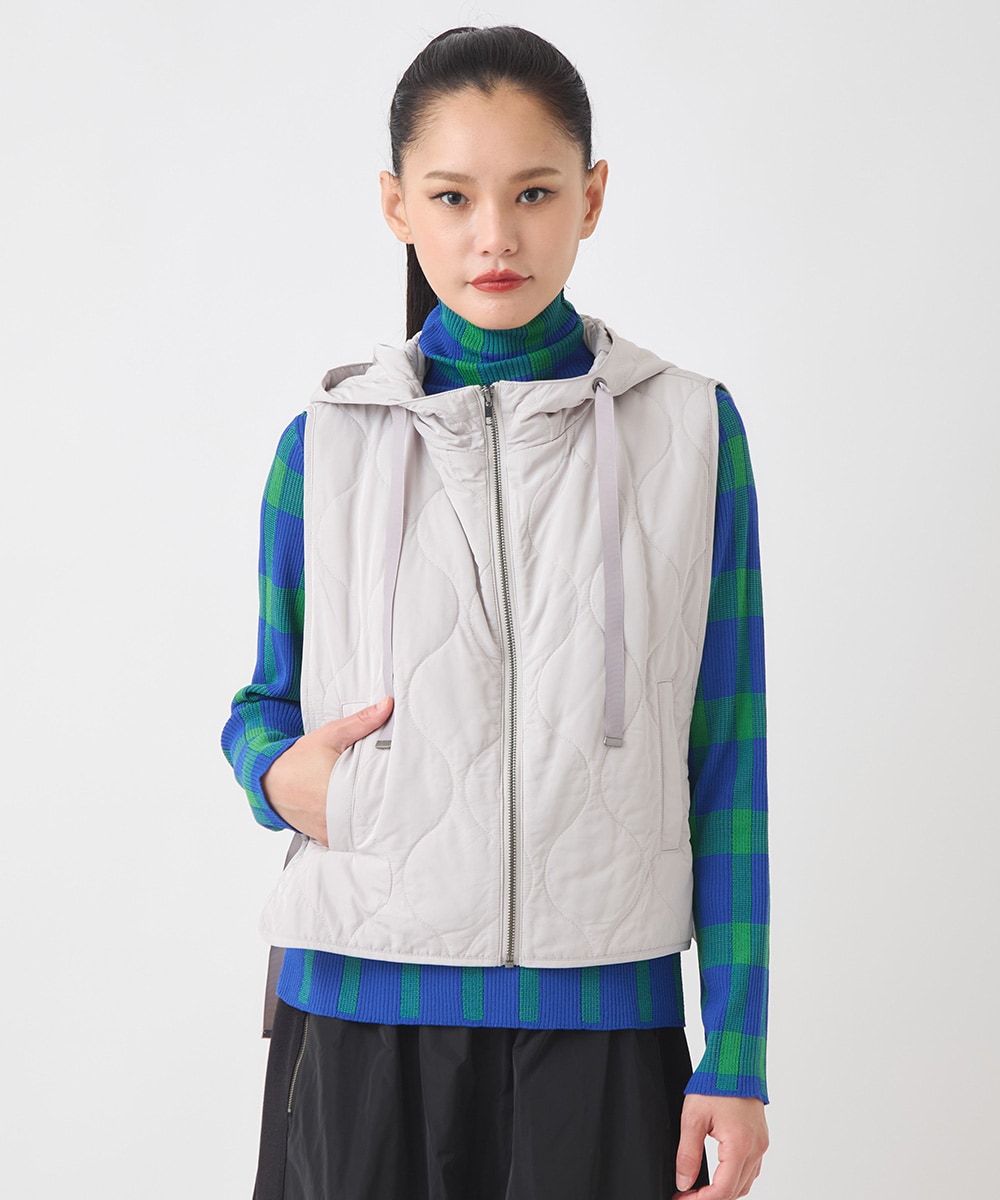 ジレはサイドが紐で調整出来てお洒落な仕上がりです。薄手のこのタイプは1枚持っておくと色んなコーディネートに使えると思います。