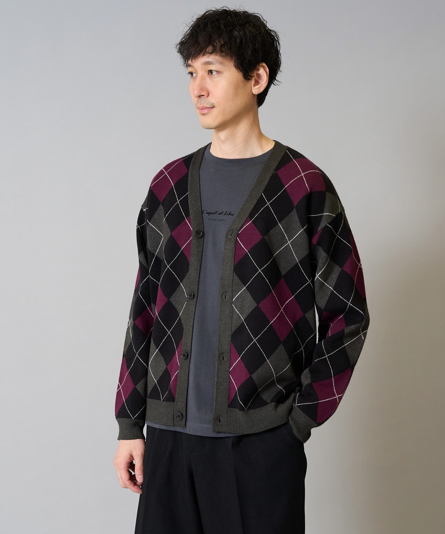 【洗濯機で洗える】アーガイルジャカードニットカーディガン
