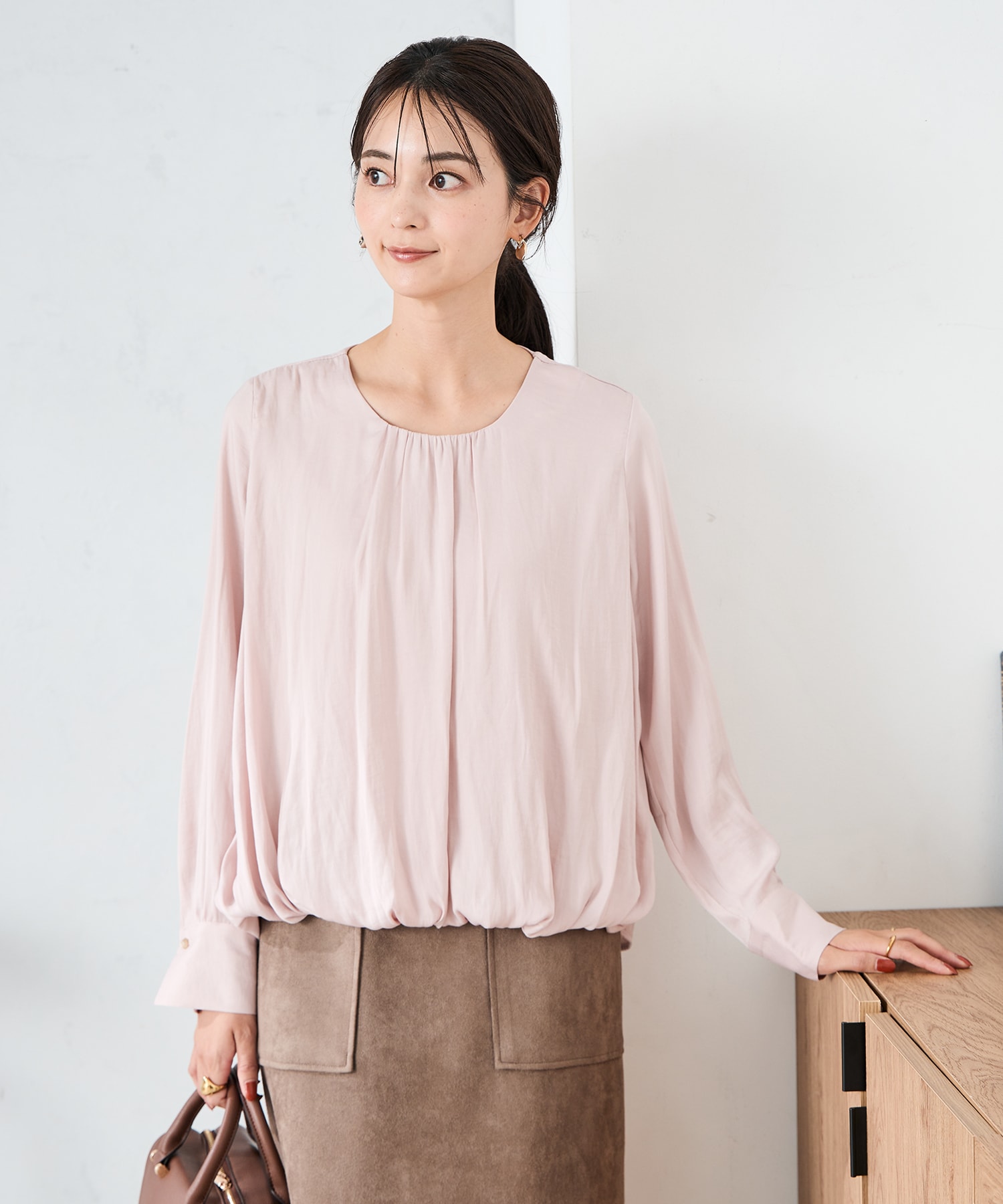 インせず決まる!トレンドを落とし込んだバルーンブラウスはSサイズ着用でゆったりタイプです