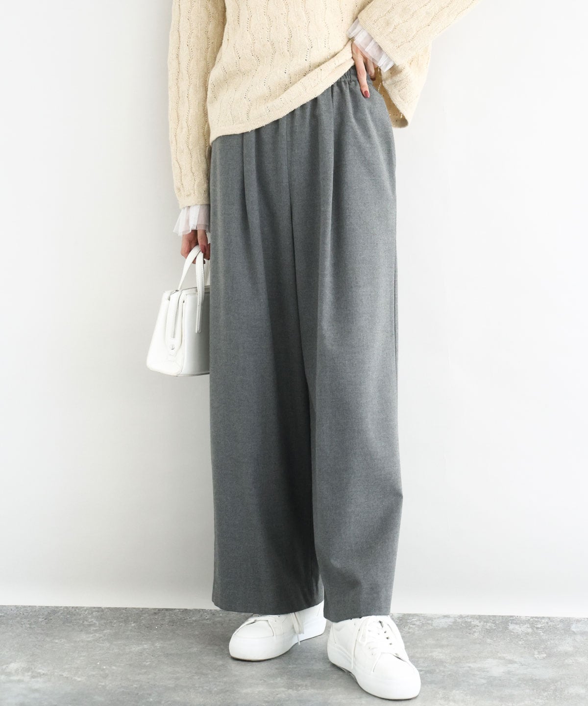 裏起毛ワイドストレートプルオンパンツ/洗える