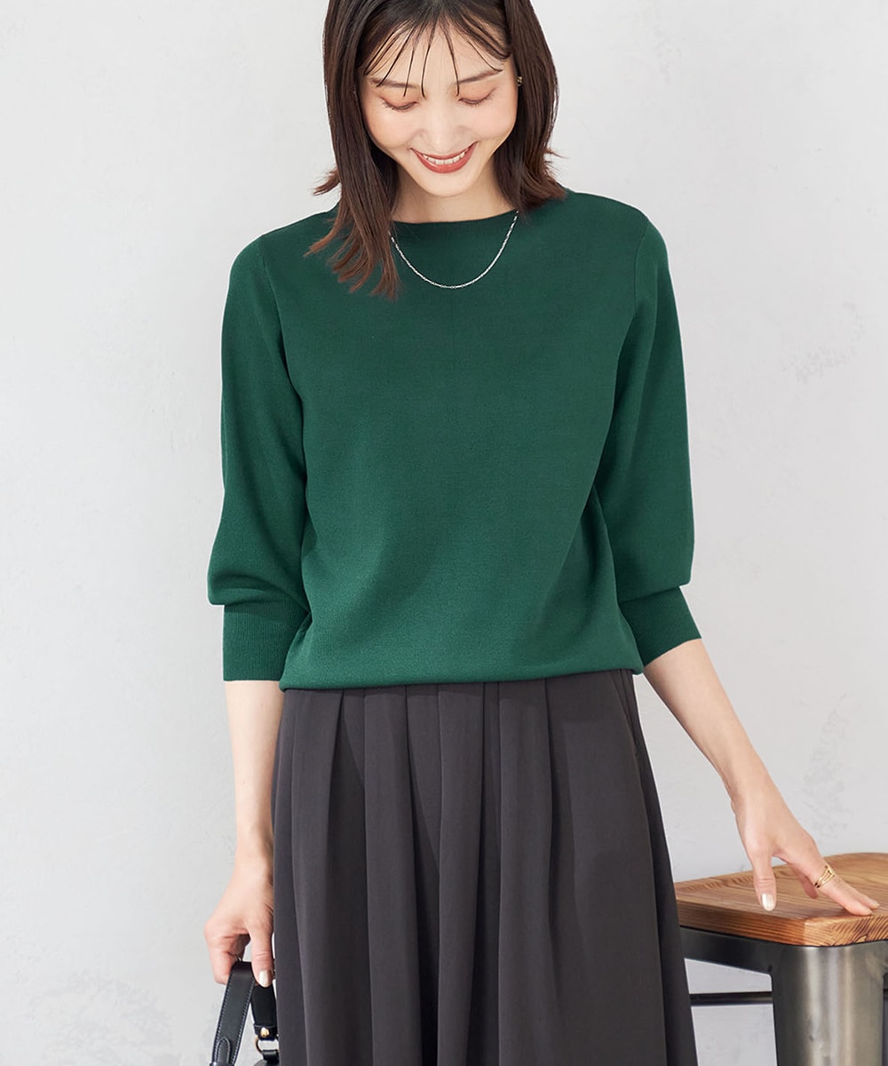 【UVカット/洗える】ボートネックパフスリーブ美ラクるニット