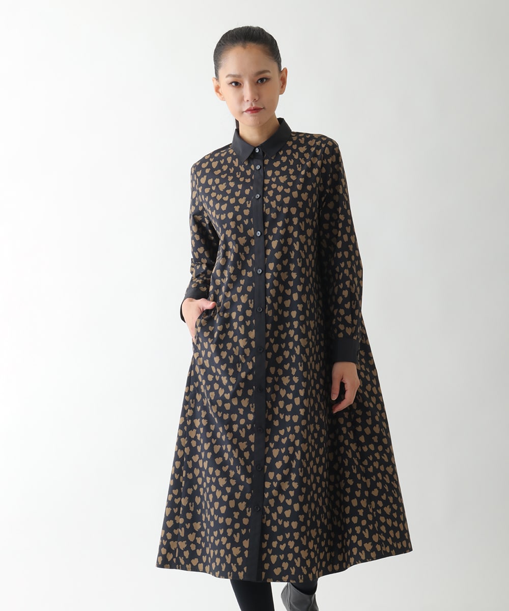 【大きいサイズ】ハート柄ドット衿付きシャツワンピース