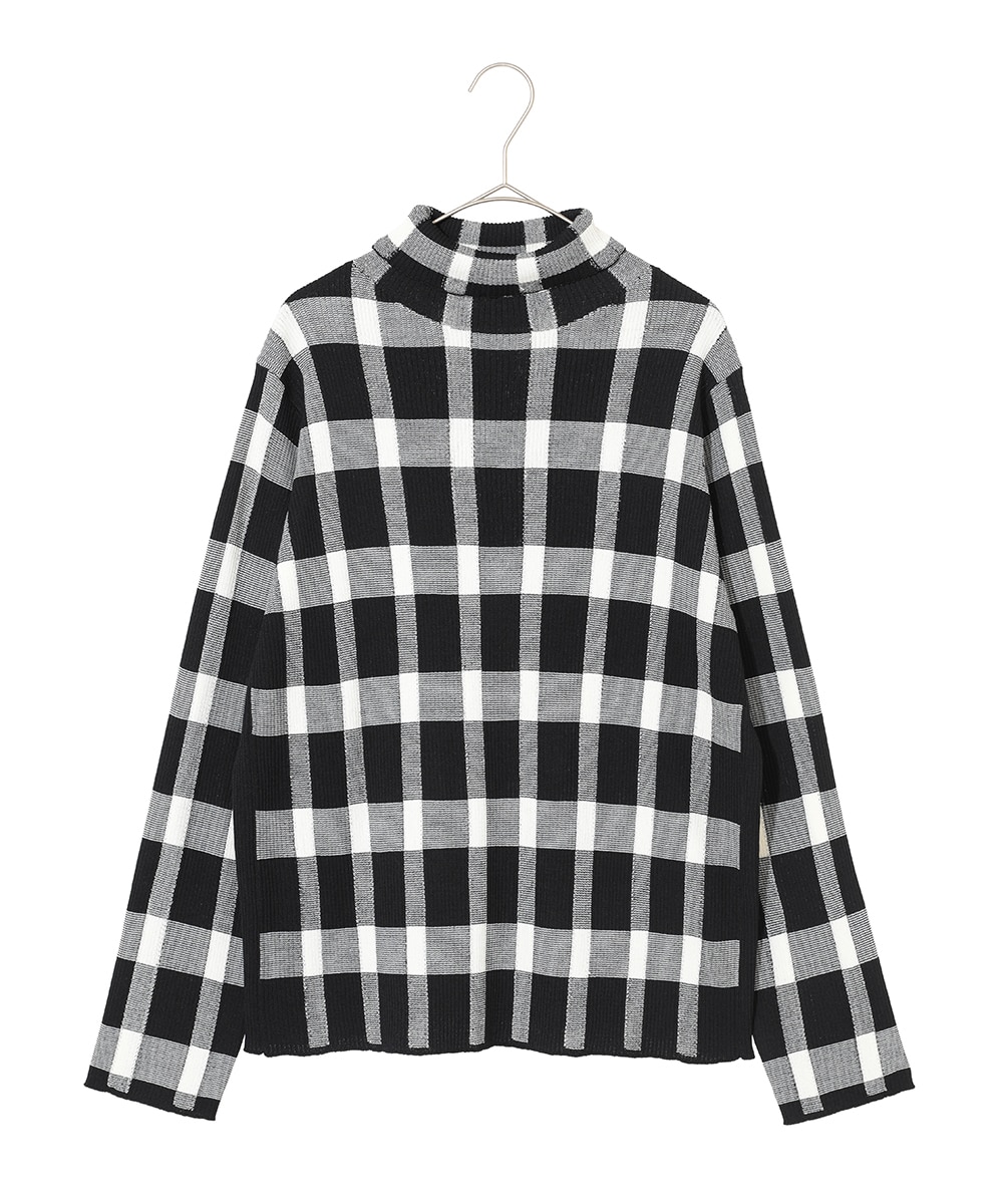 チェック柄インターシャニットプルオーバー