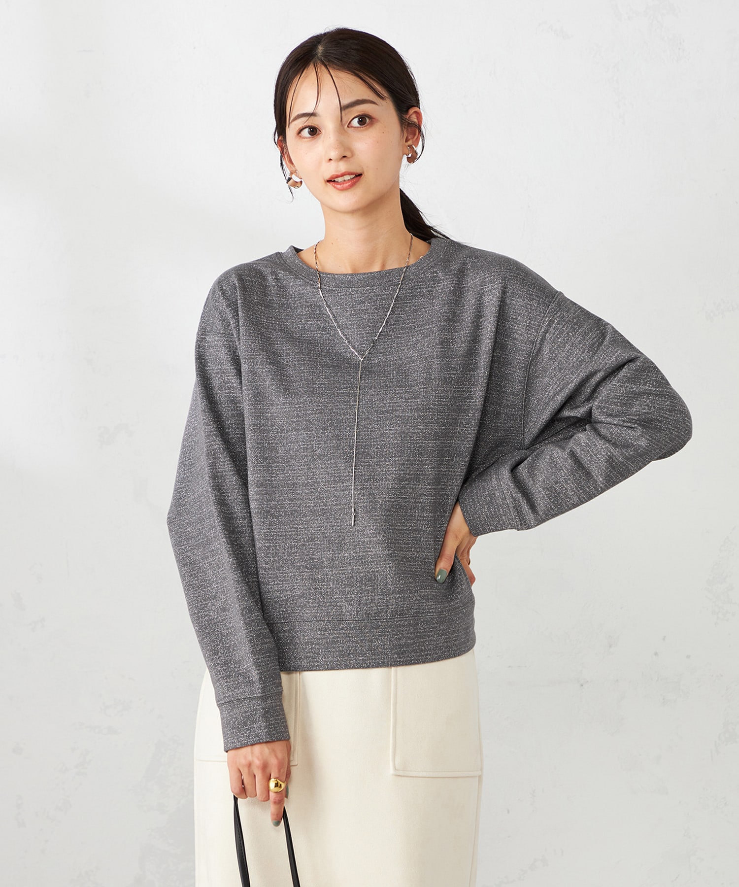 ・カジュアルになりがちなスウェットも細かなラメで品よく大人な着こなしに