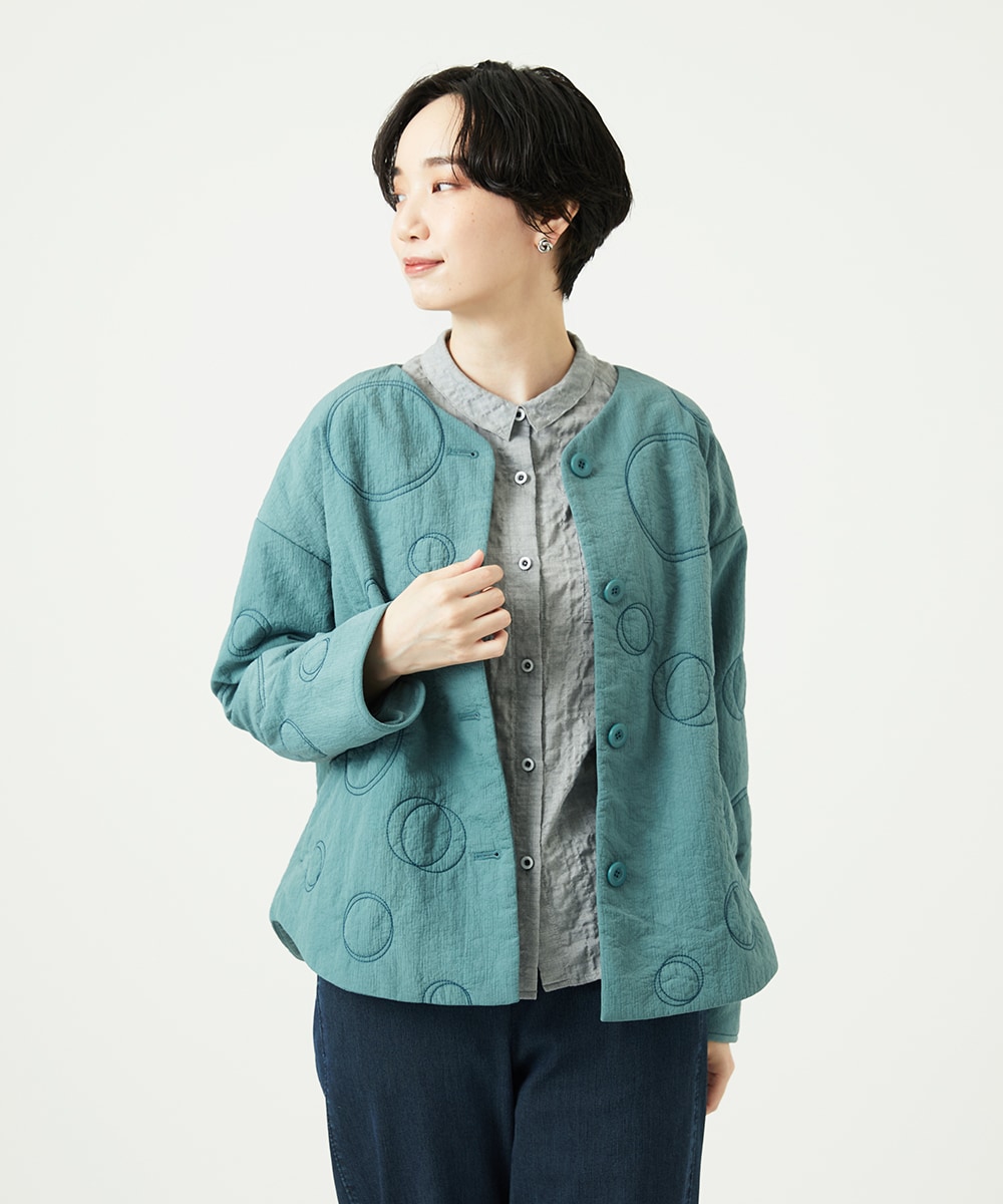 刺繍ブルゾンは、立体感のある刺繍がアクセントになり、シンプルながらも存在感のある仕上がり。軽やかで動きやすく、コーディネートの幅を広げてくれます。