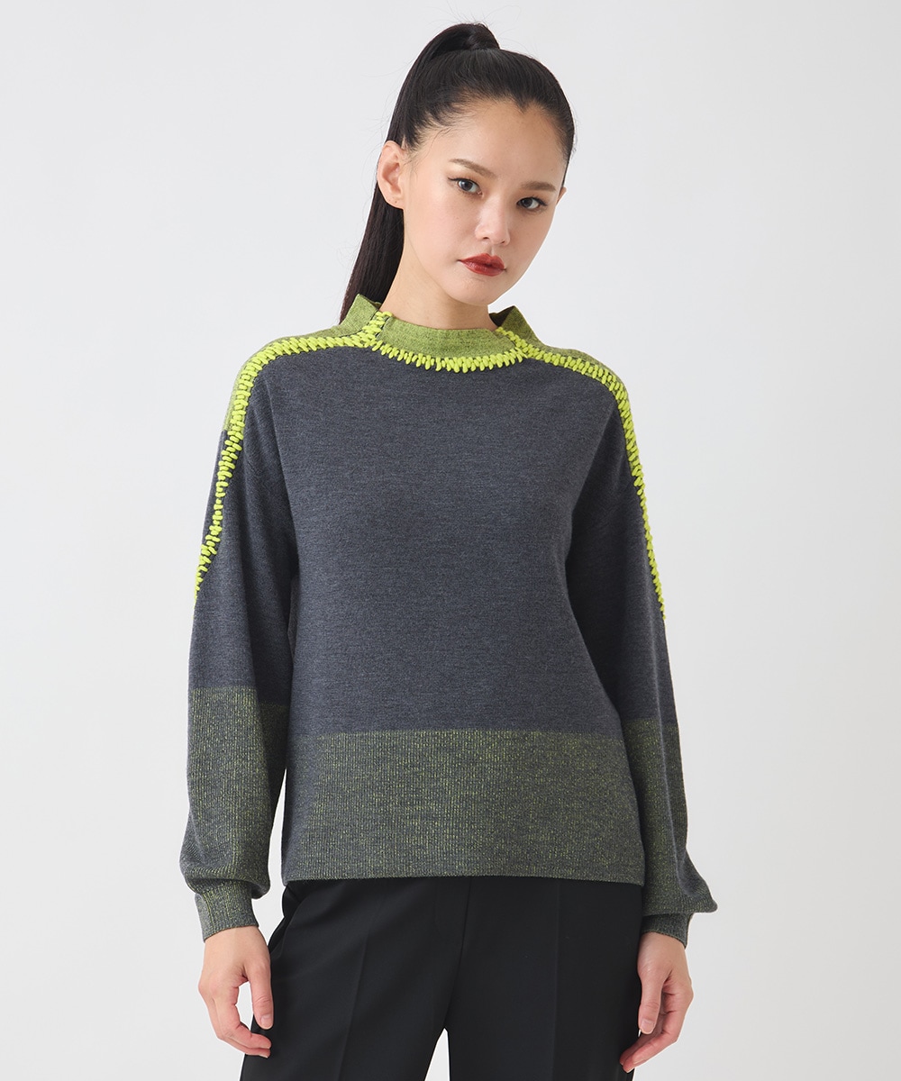 プレーティング刺繍ニットプルオーバーは、立体的なハンドステッチとソフトなカラーコントラストが魅力の一枚です。
