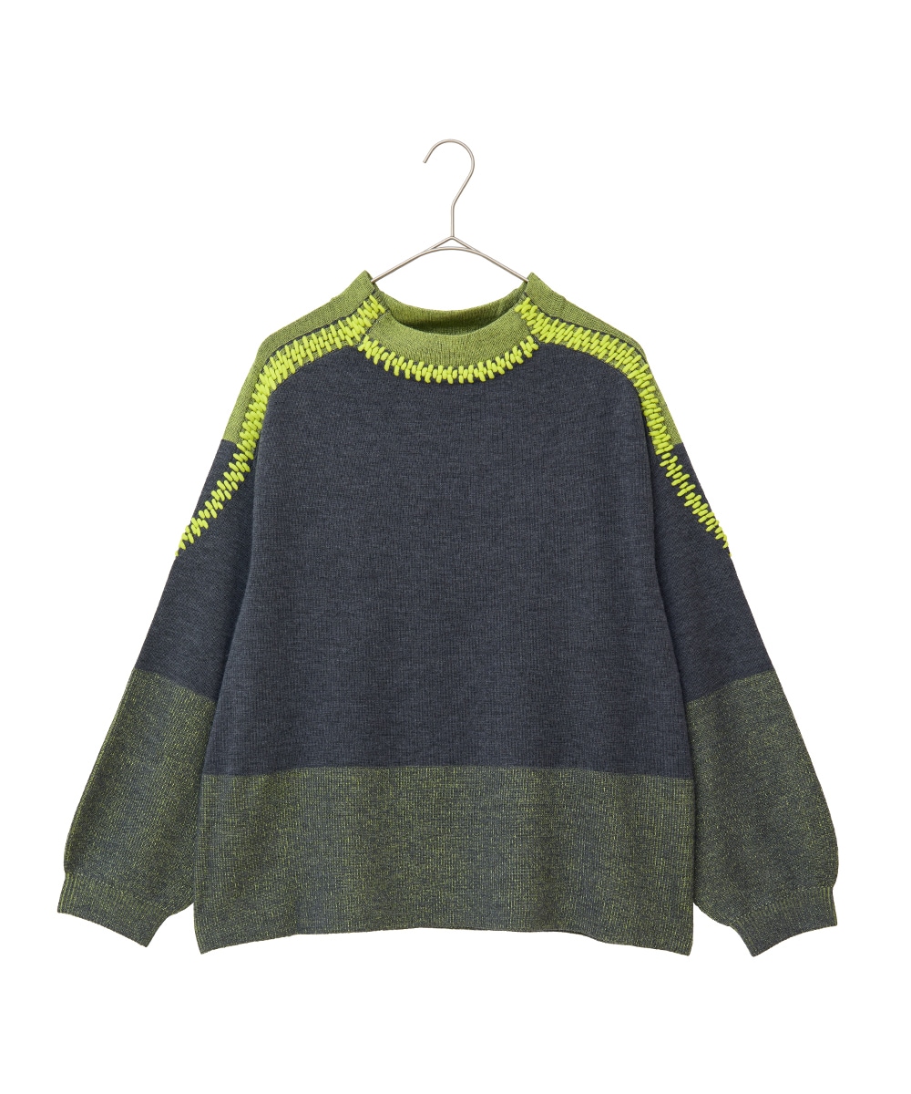 プレーティング刺繍ニットプルオーバー