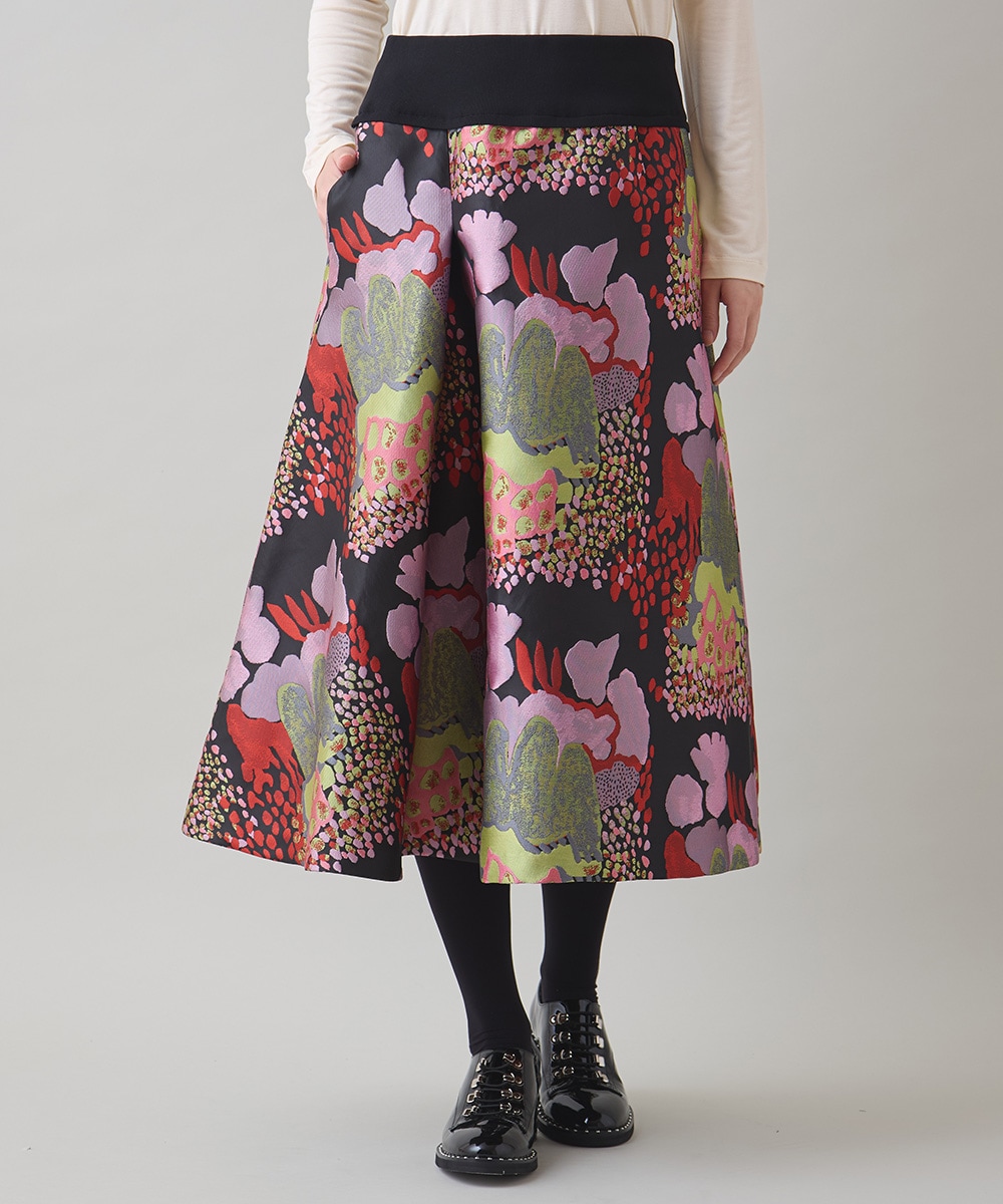 絵画ジャカードフレアスカート/日本製