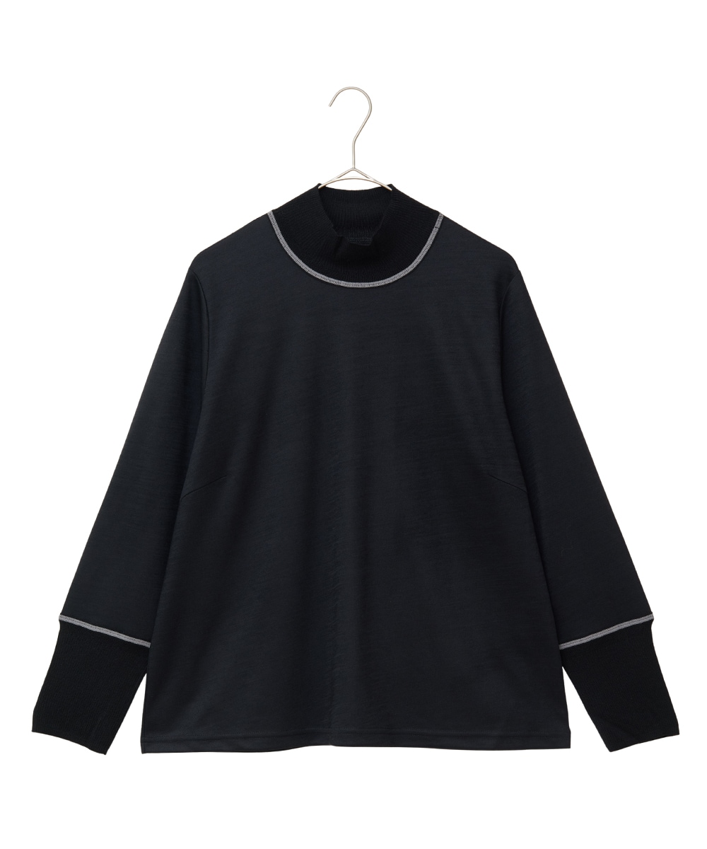 配色アクセントハイネックインナープルオーバー。上質なジャージ素材とリブニットをドッキングしたインナーアイテム。ハイネックや袖口の配色リブがアクセントに。伸縮性もありラクな着心地です。