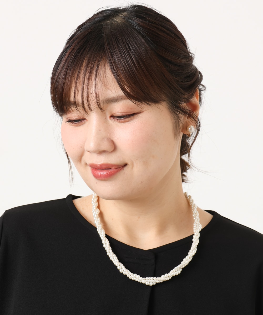 大きめのパールビーズがアクセントとなり、ドレープシルエットが華やかさを引き立てます。
