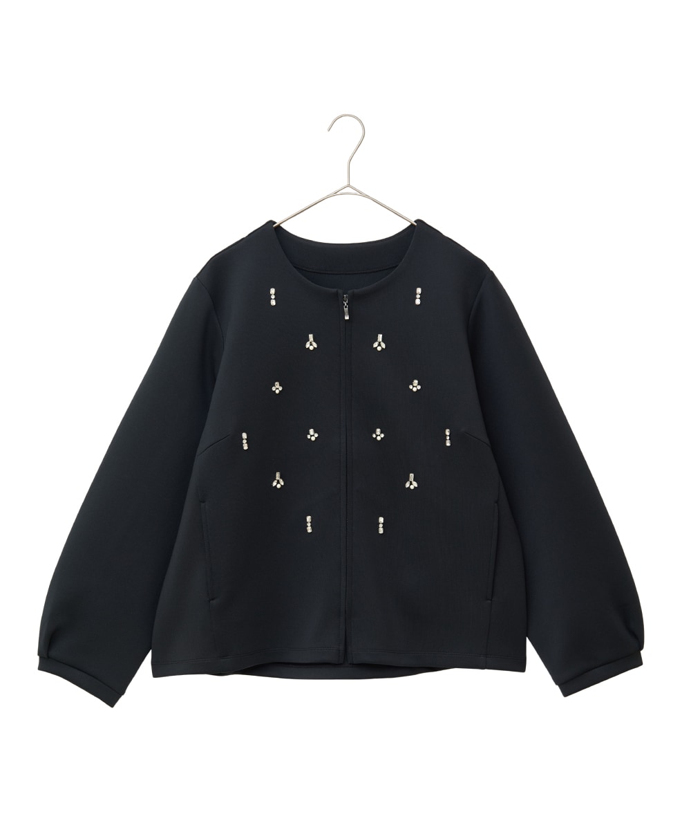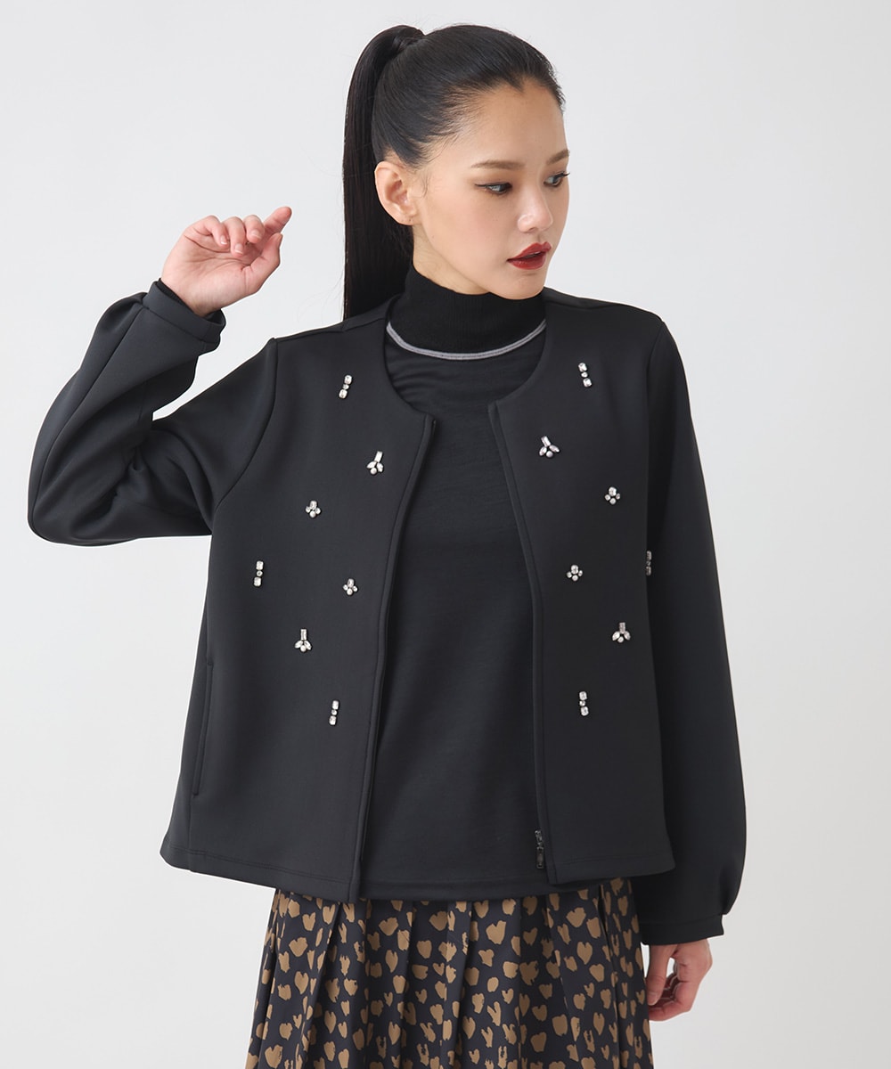 カーディガン:ビジュー付きのカーディガンは、ノーアクセでも華やかに見せてくれます。程よくゆとりのあるシルエットで軽やかな着心地も魅力です。