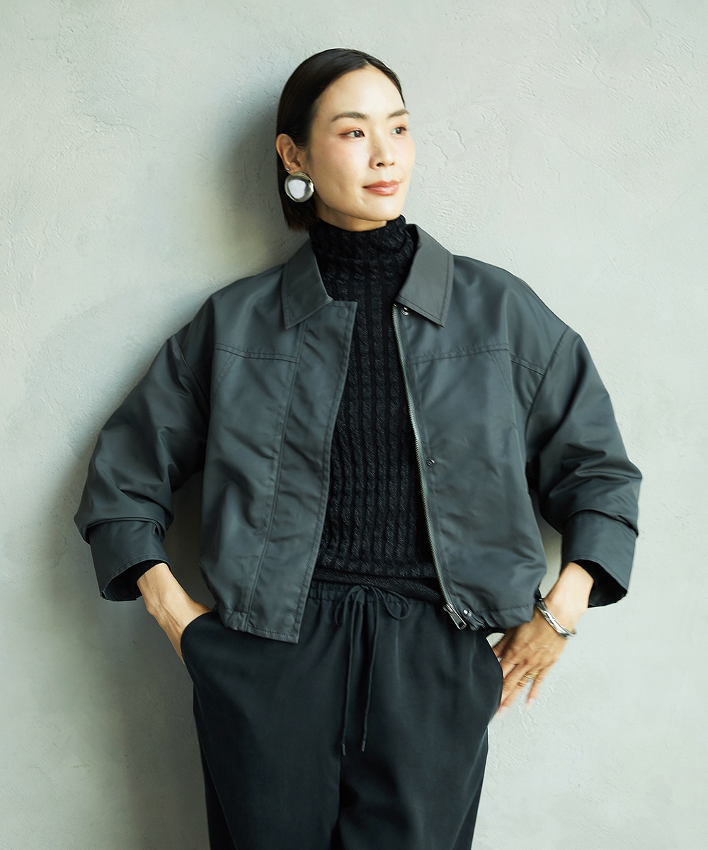【 秋のお出かけに ショートブルゾン × 非ウールニット × サテンスカート 】
