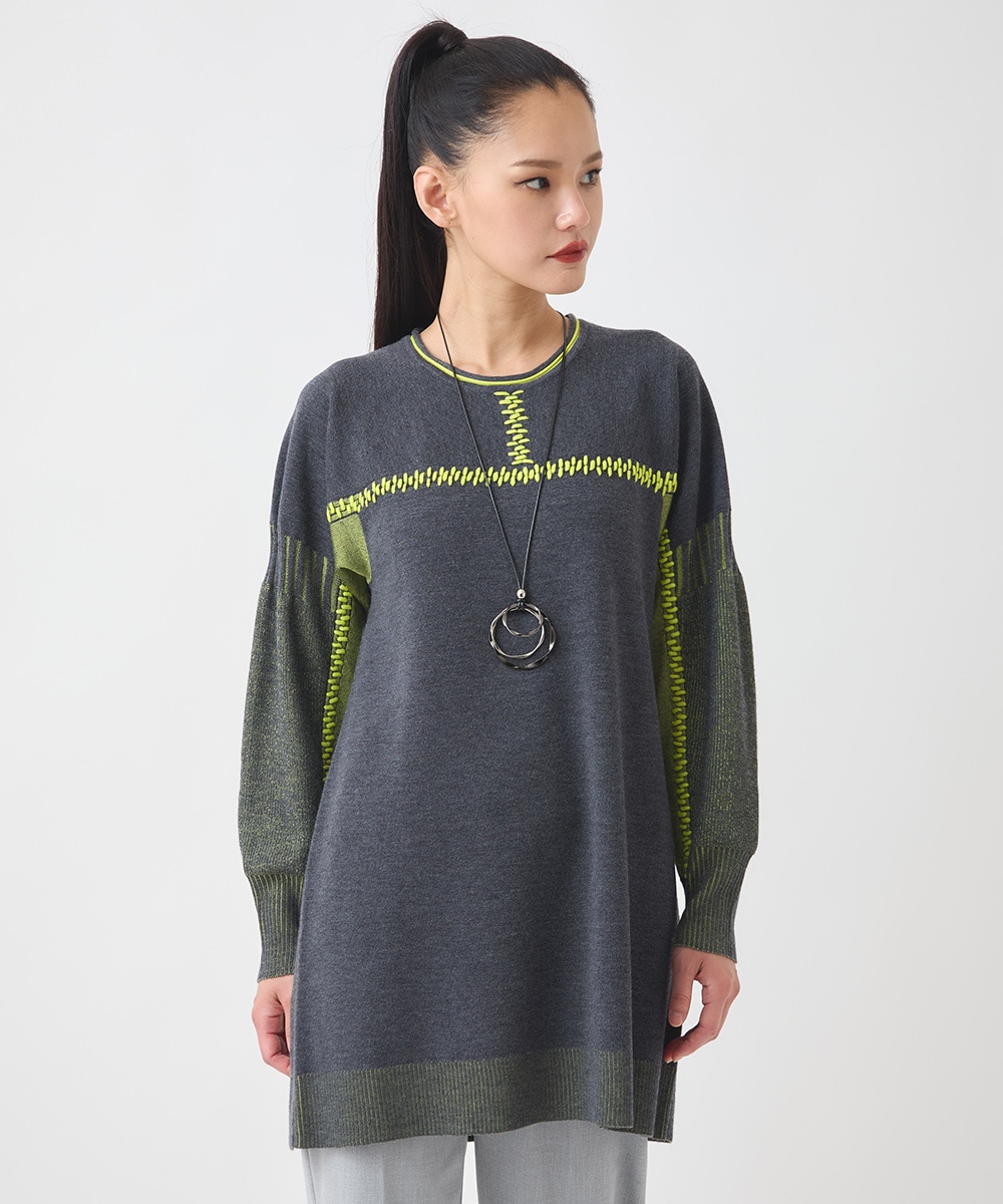 【大きいサイズ】プレーティング刺繍ニットチュニック