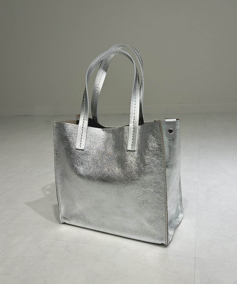 シルバーメタリックのバッグで、