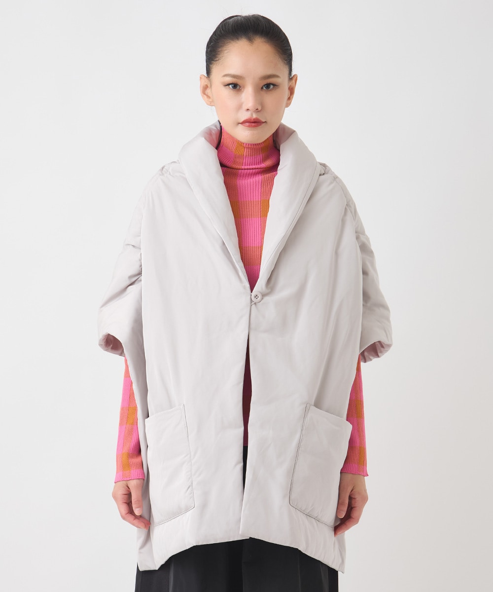すっぽりと包み込むゆったりとしたサイズ感とボタン付きのデザインで、簡単に着脱可能。