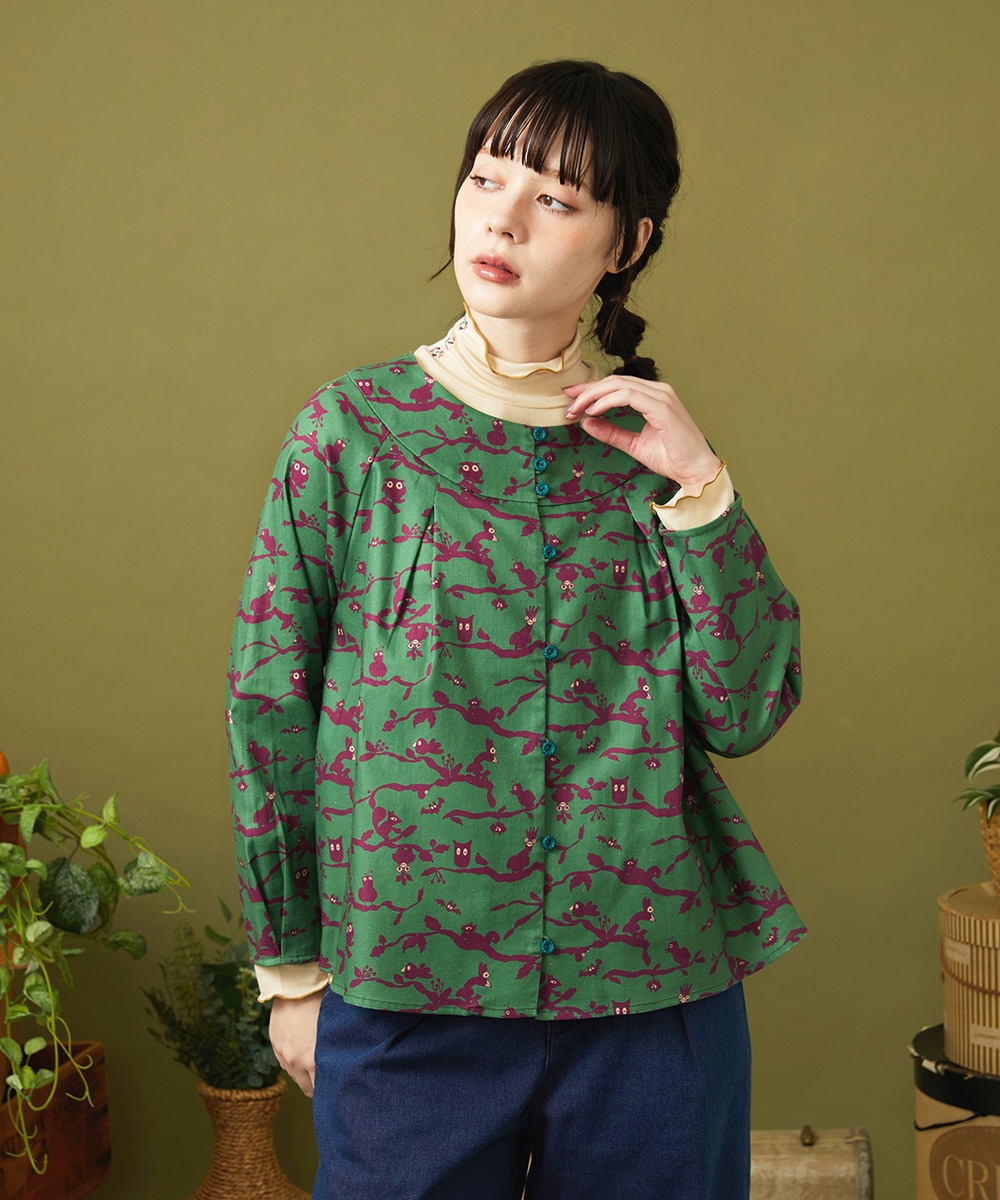レーヨンベアフライス フラワーモチーフハイネックカットソー