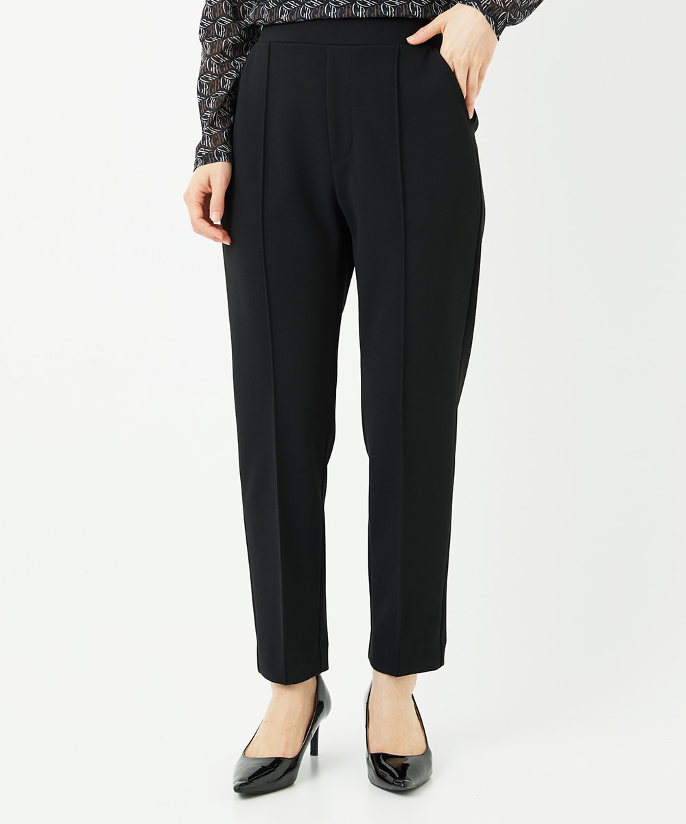 [日本製]カットジョーゼットストレッチテーパードパンツ