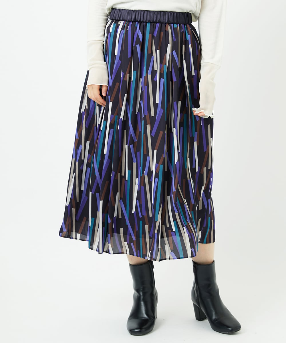 通勤や食事会、ランチ会などのシーンにぴったりのデザインで、ウエストゴム仕様により着心地も抜群。