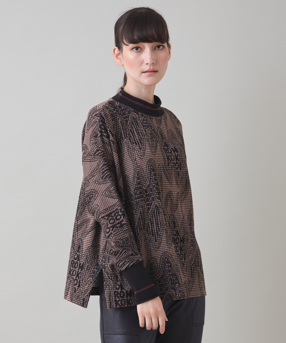 ラメ入りボーダー柄のジャカードニットプルオーバーは、自然をモチーフにしたデザインとポップな総柄が秋冬のコーデに華やかさをプラス。