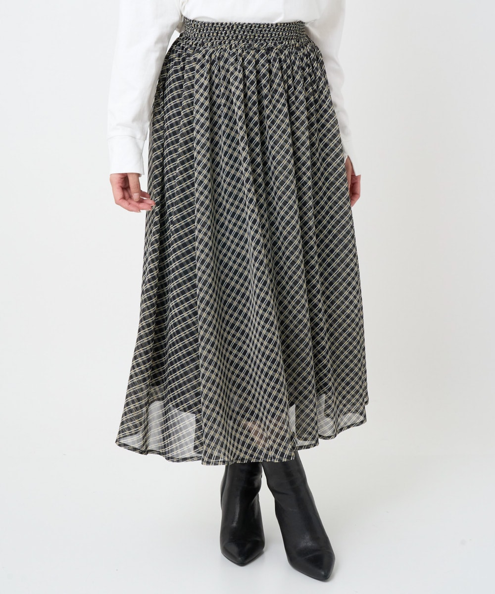 上品なチェック柄シフォンスカートは、オフィスや休日のお出かけにぴったりで、広がりすぎない落ち感のある素材が動きやすさとエレガントさを両立。