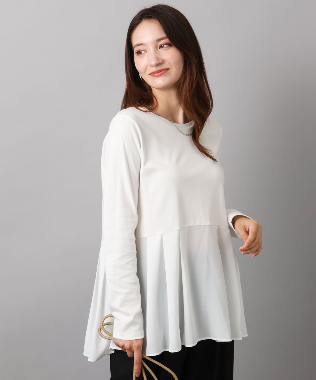 タックプリーツデザイン ペプラムインナーカットソー/洗える