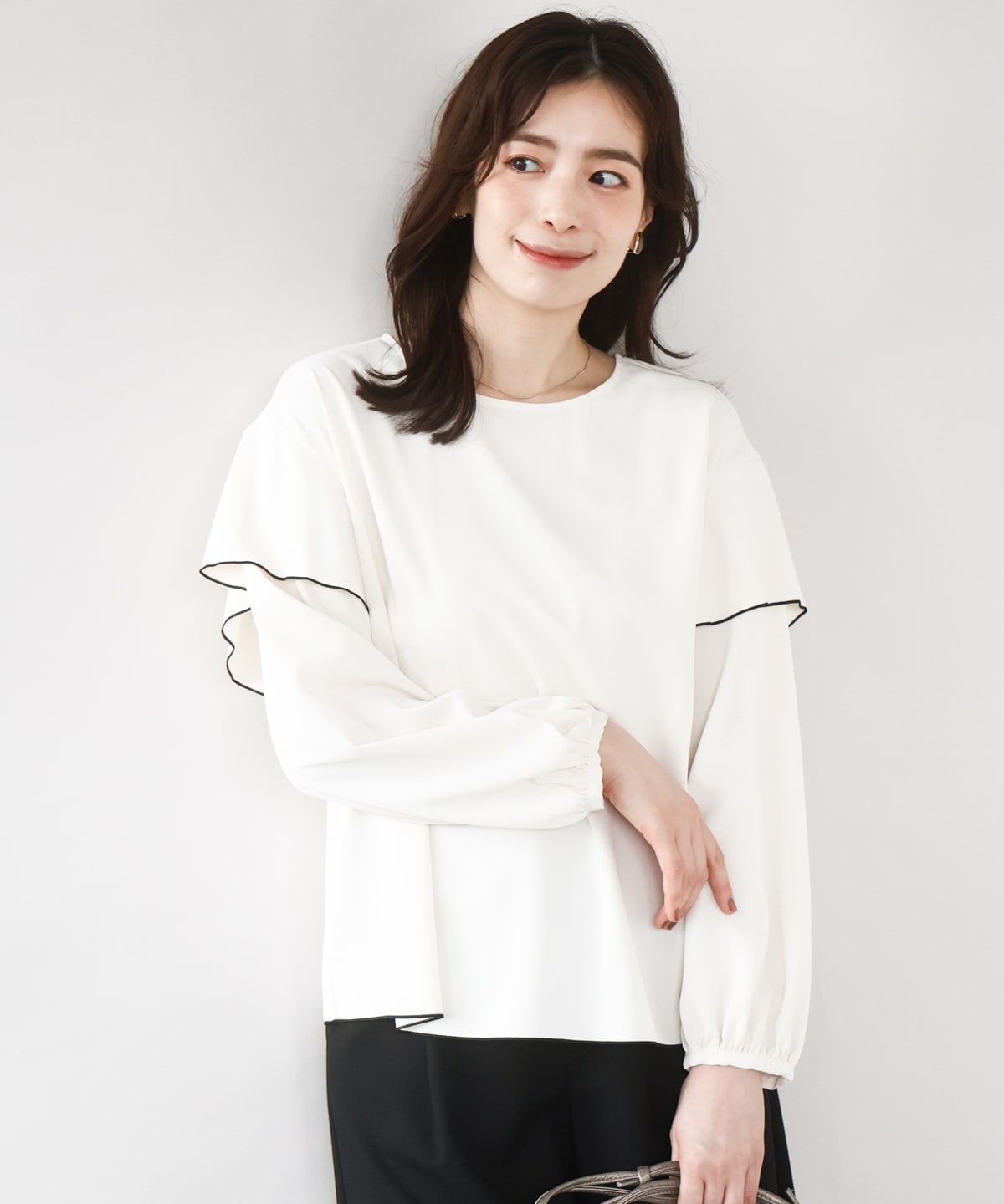 シンプルながらもディテールにこだわったデザインのブラウスは、オンオフ問わず幅広く活躍します。