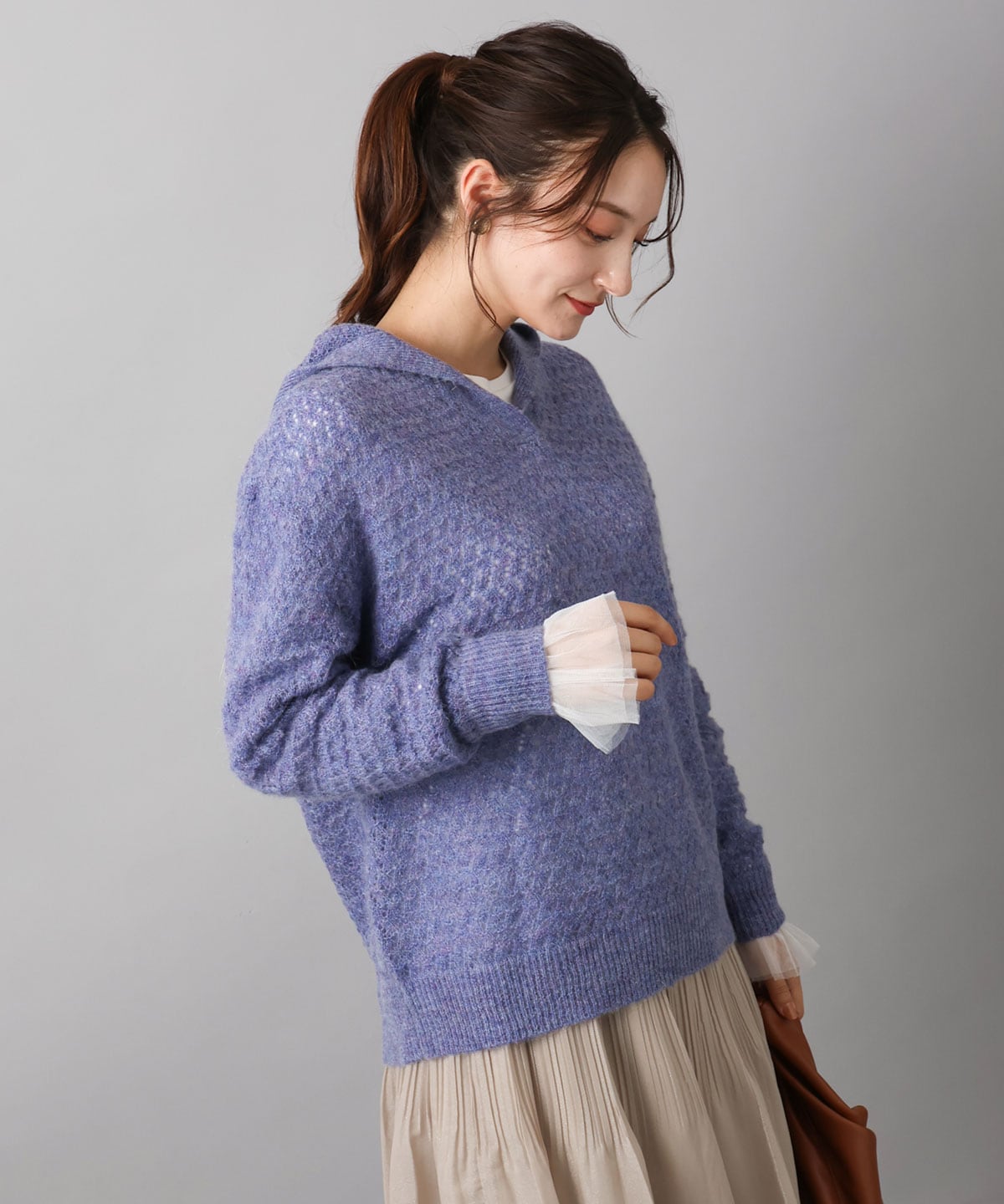 モヘア混の優しい素材感と適度な透け感がカジュアルスタイルにぴったり。