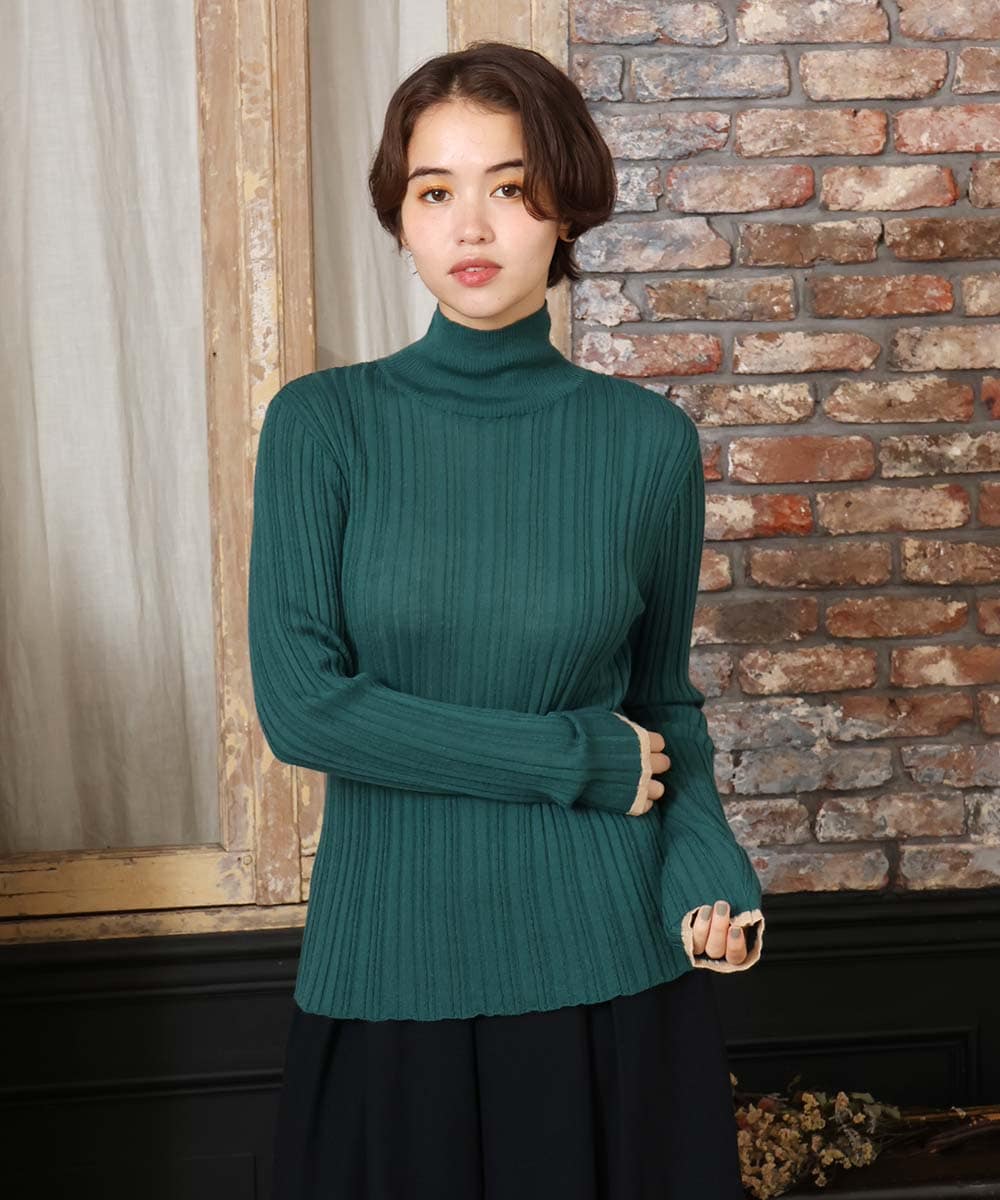 アクリルと毛を使用したソフトな着心地のニット素材。ほどよいフィット感があり、インナー使いにもオススメなシルエットです。前後どちらでも着用可能で、首元にあしらったボタンを閉じての着用と、開けて着て襟のようにして着用することができます。