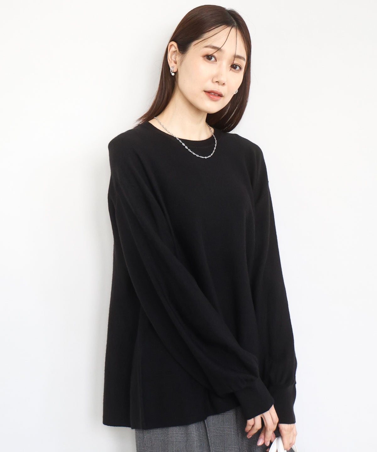 1枚でもレイヤードでも決まるチュニック丈ニットで、フレアシルエットがとてもきれいな1枚です。