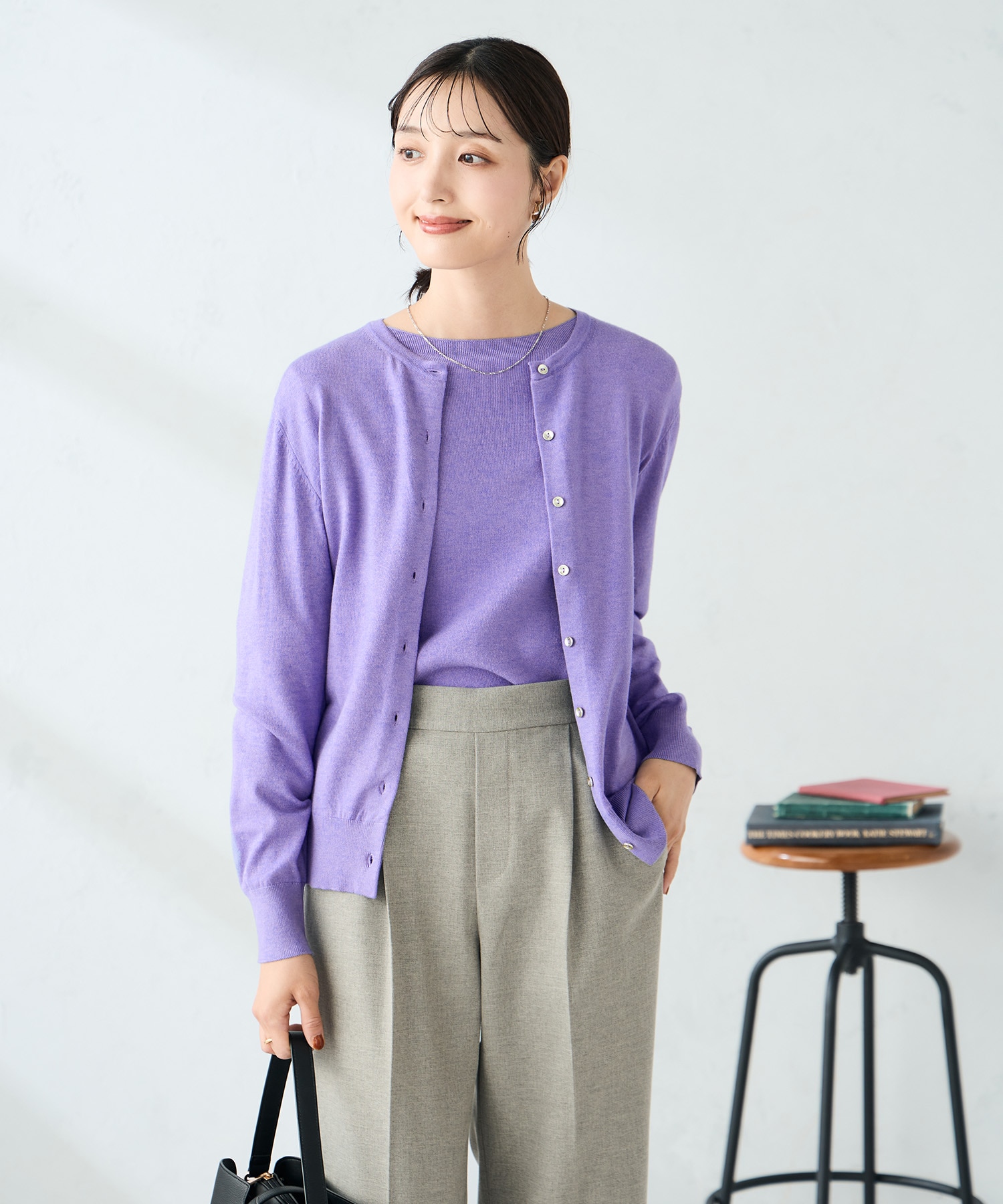 洗える クルーネック美ラクるカーディガン