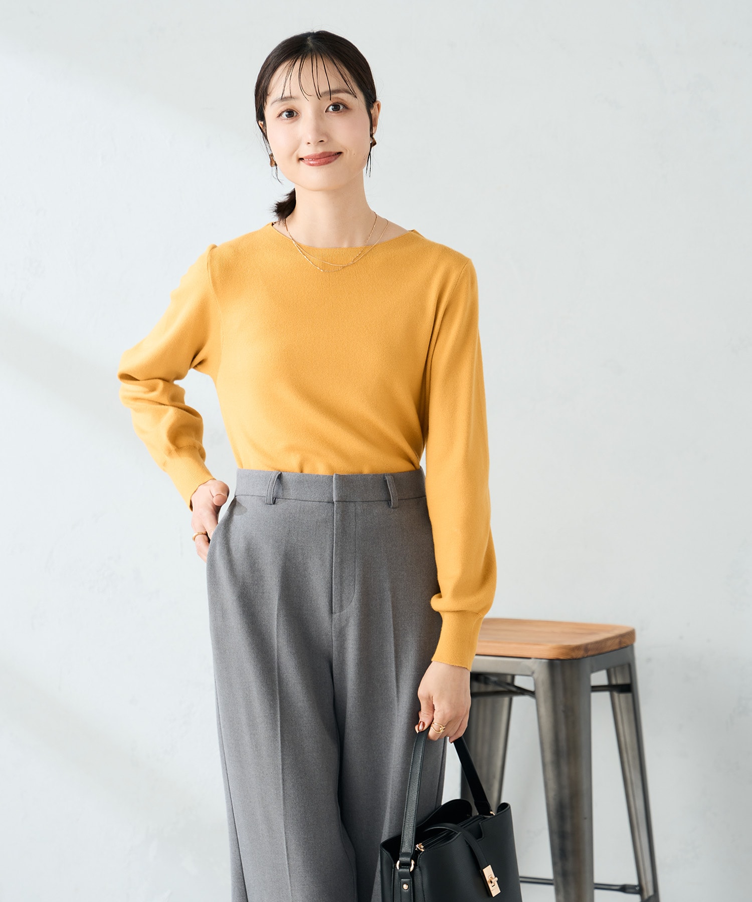 ニットはモチっとした生地感で着心地◎