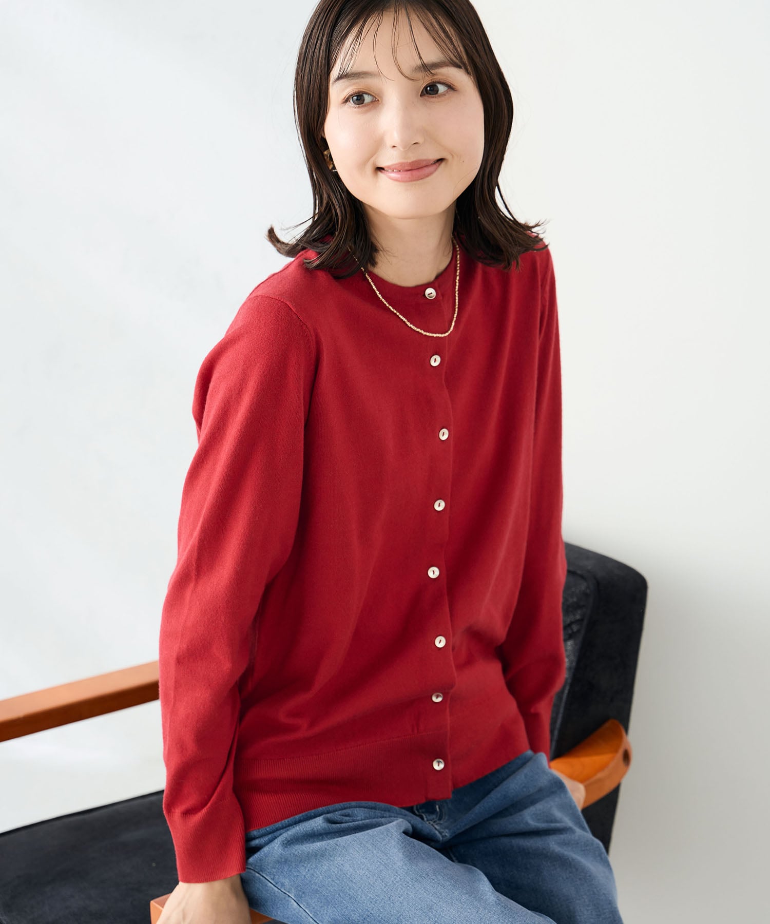 定番クルーネックカーディガンが
