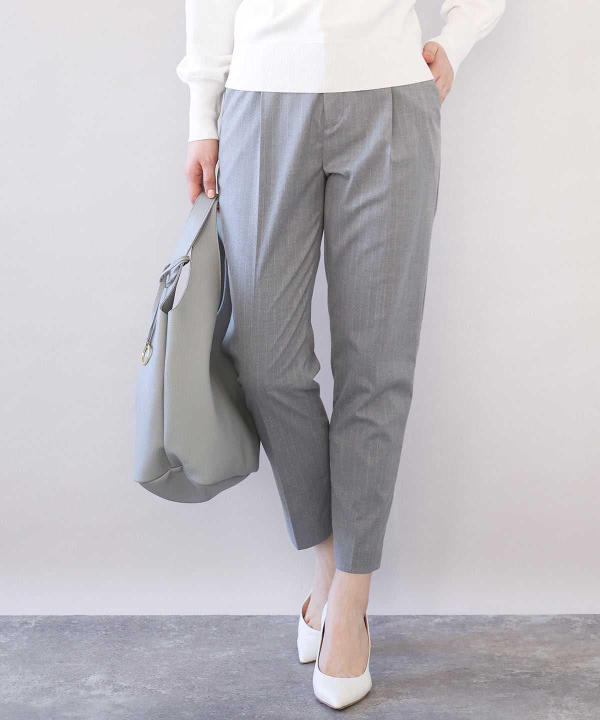 [名品シリーズ]ストレッチテーパードパンツ(ストライプ・無地)