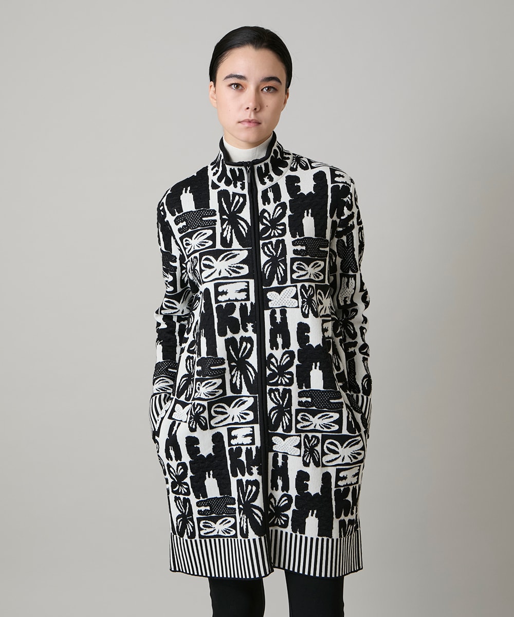 シンプルなボックスラインのロングデザイン.ハイネックでネックラインもすっきり.