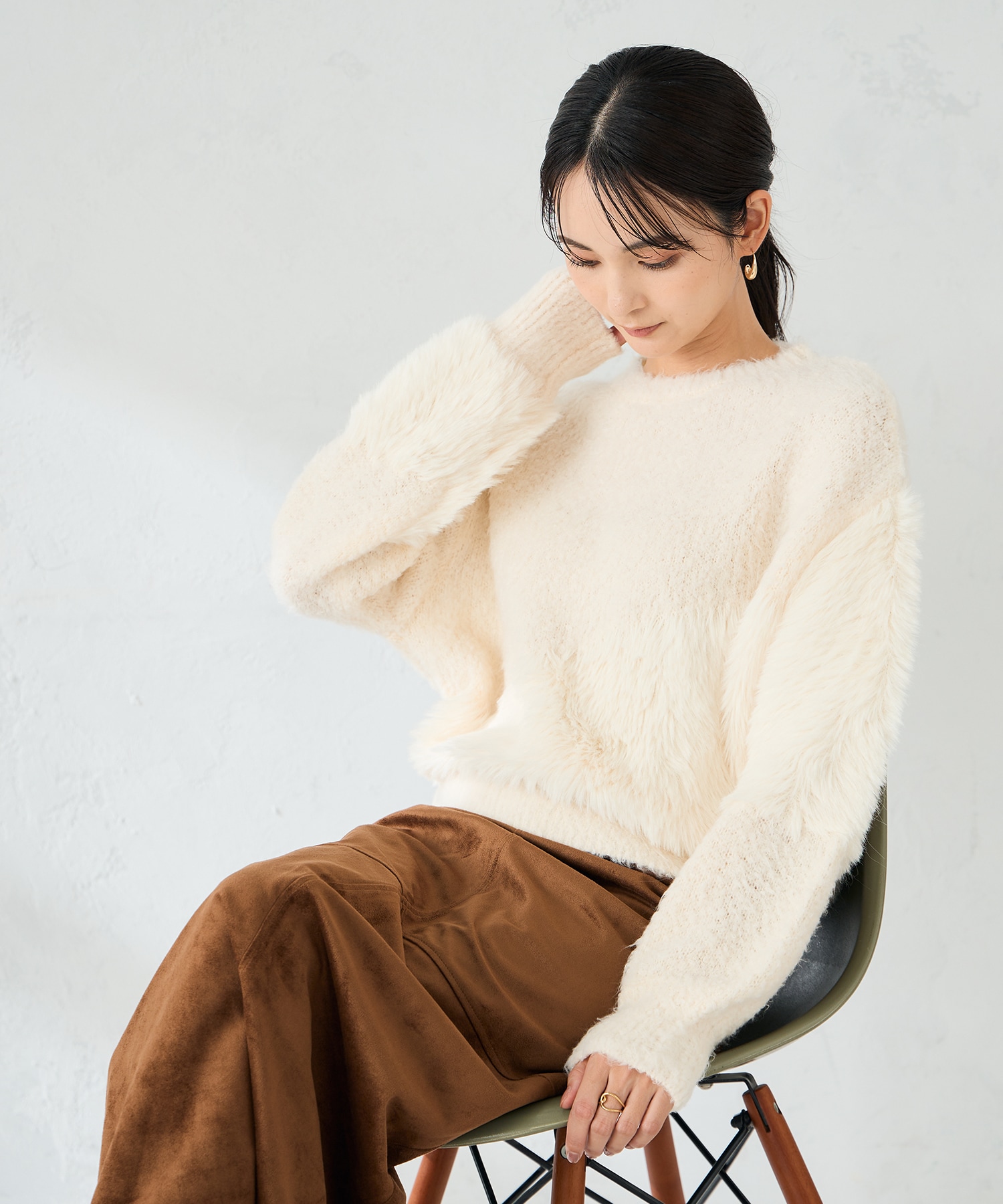 デザインがおしゃれ見えしてもっちり柔らかく一枚で映えるニットです