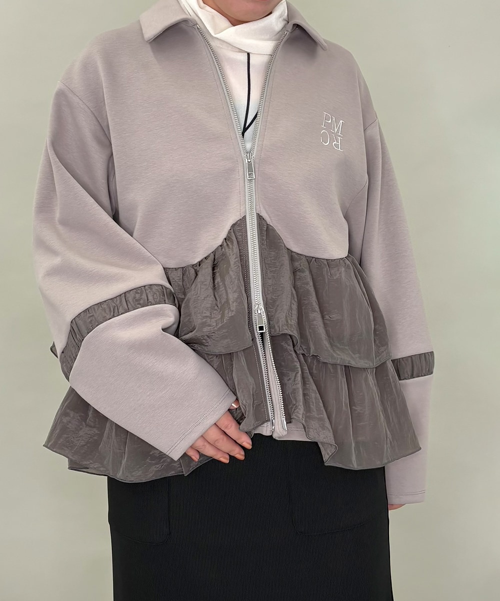ツヤ感あるシアー生地を裾にジョイントしたバルーンヘムがトレンド感に、