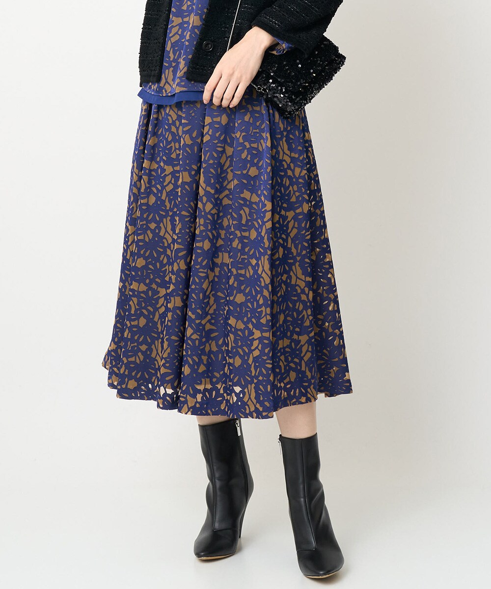 セットアップ対応のフラワーオパールプリントブラウスとスカートは、