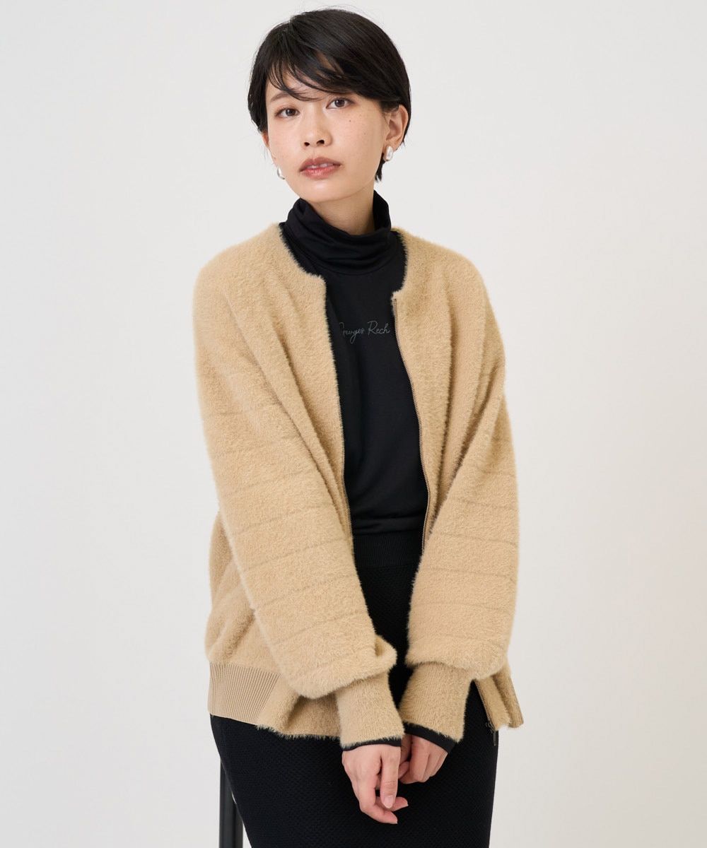フェザーヤーンリバーカーディガンは、ふんわりとした羽毛のような素材感が魅力の一着です。