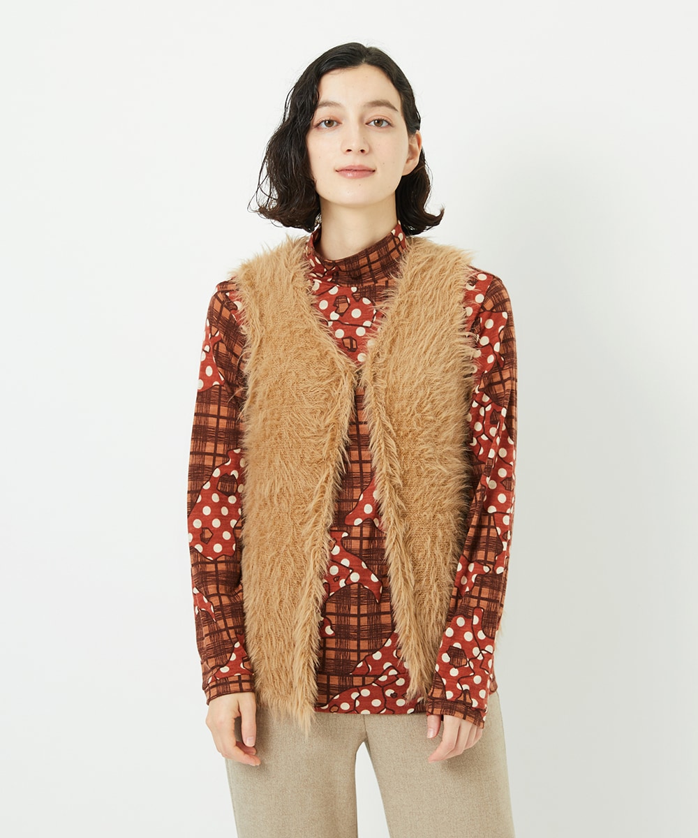 先染めチェックブラウスです。シンプルなデザインでウールが入っていて軽くて暖かいです。
