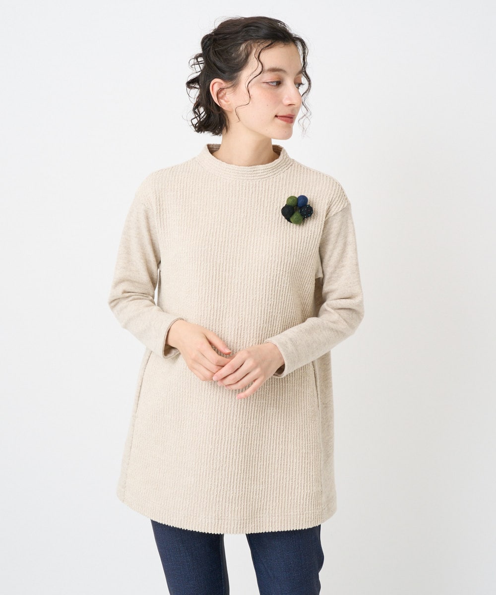 洗える・日本製のコットンスラブインレーチュニックカットソーは、ジャージ素材を用いた凹凸感のあるジャガードデザインが魅力です。