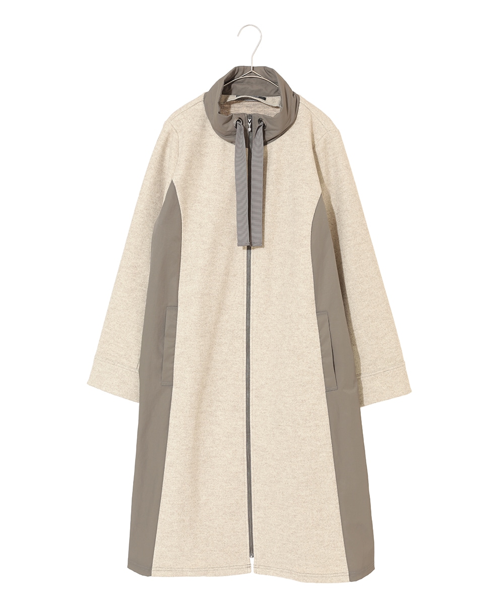 【大きいサイズ】異素材スタンドカラーロングコート /洗える