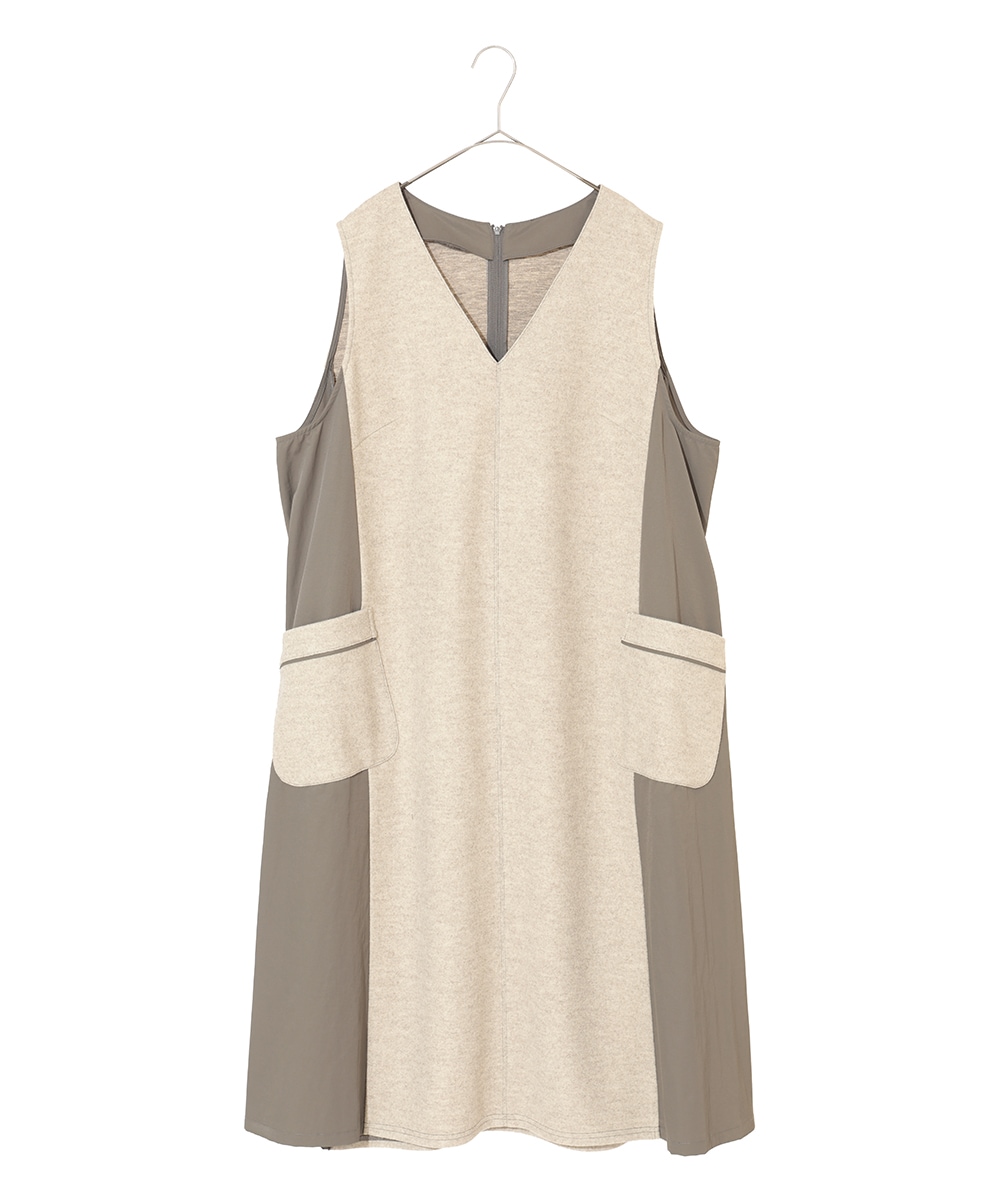 【大きいサイズ】異素材Vネックジャンパースカート /洗える