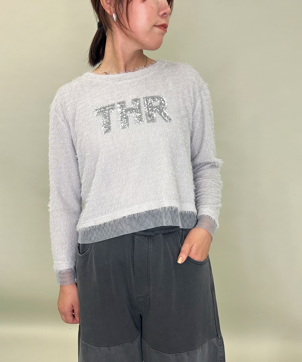 胸元に施したスパンコールのインパクトのあるロゴモチーフがより存在感をアップ。