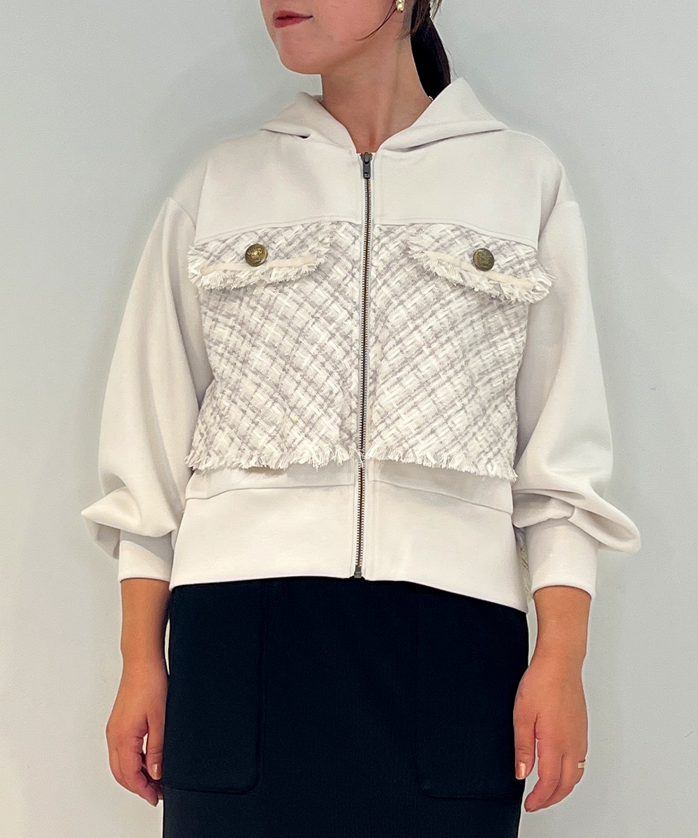 ツイード素材をドッキングしたラフな着心地が魅力的、