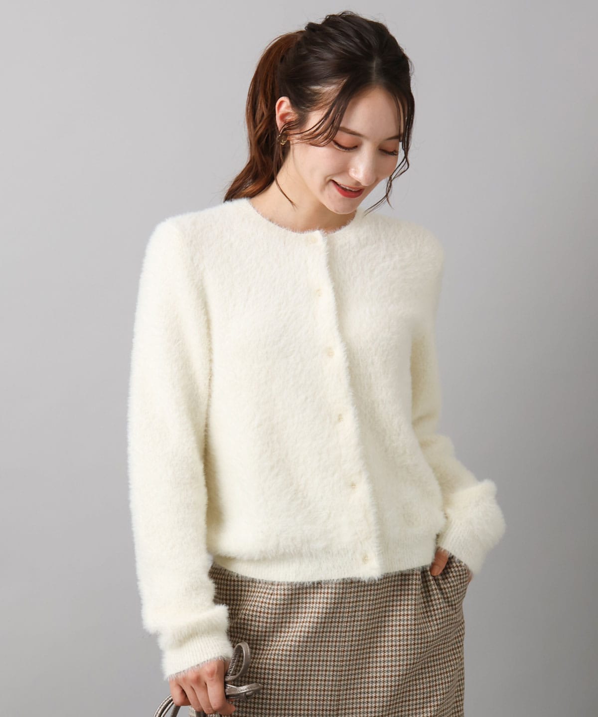 シーズンムードを高めてくれるシャギーニットカーディガン。Wフェイスの編地で垂れ感と型崩れを軽減してくれます。何にでも合わせやすいベーシックな形とコンパクトな丈感。