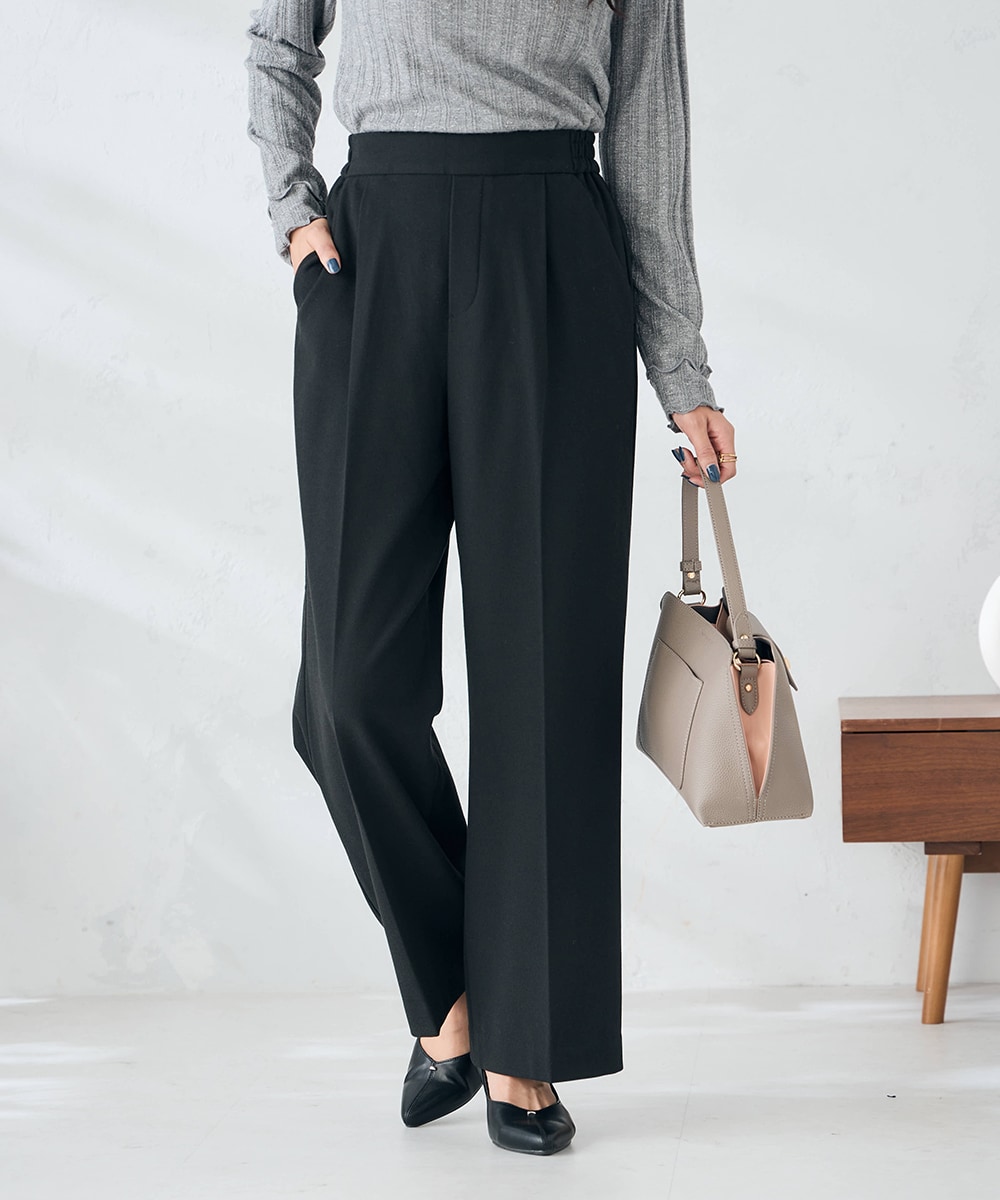 【イージーケア/洗える/ストレッチ】裏起毛美ラクるスッキリ見えワイドパンツ